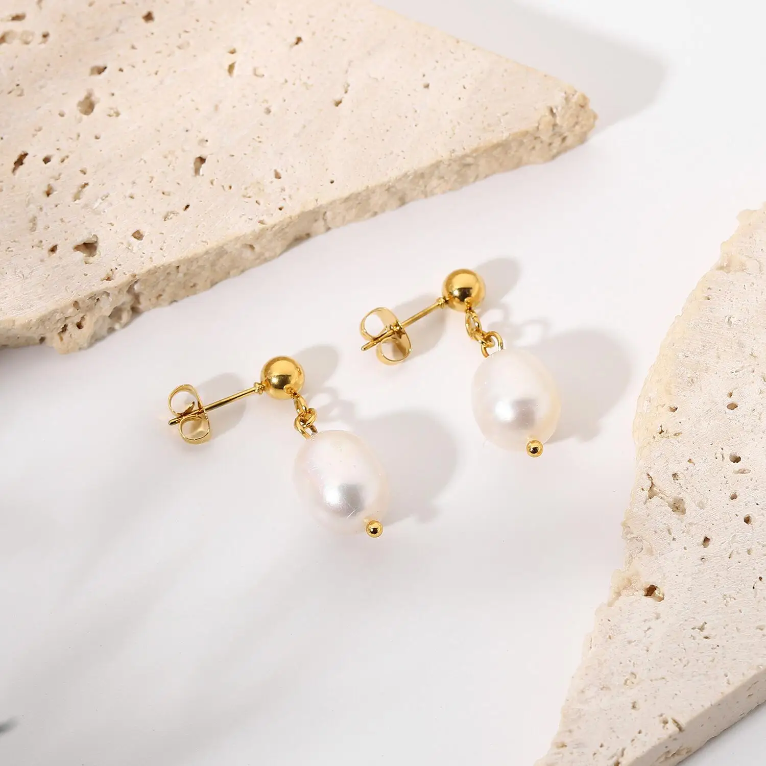 Chic Gold Stainless Steel Statement Earrings for Women Baroque Pearl Pendant Drop Earrings Chic Accessories