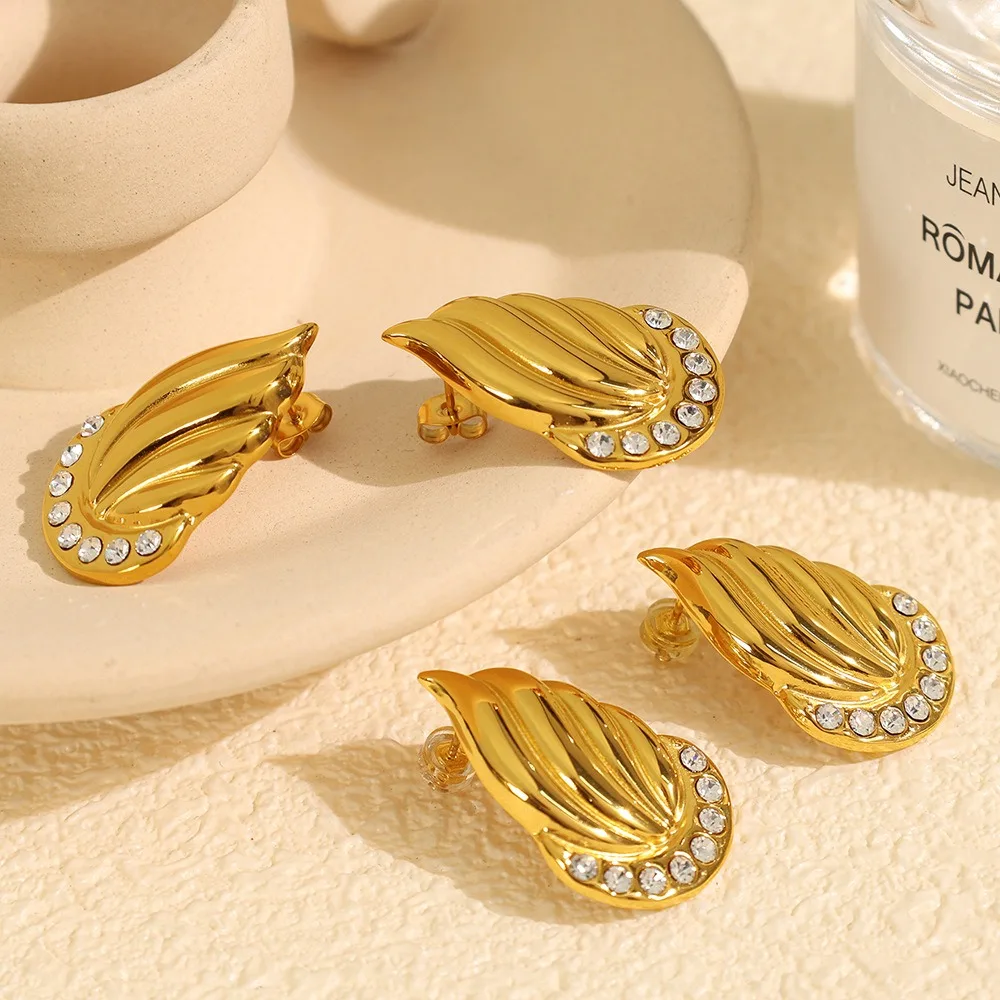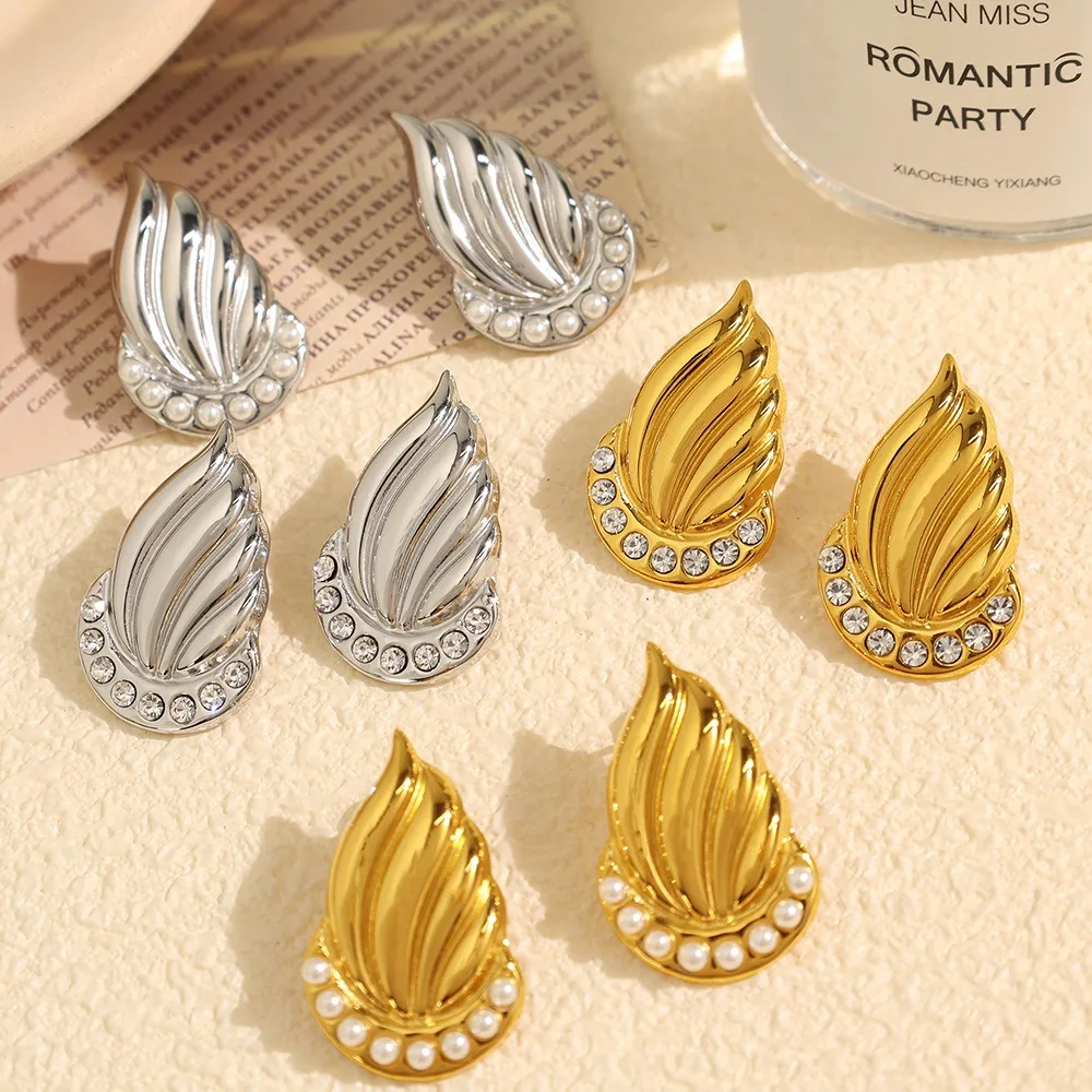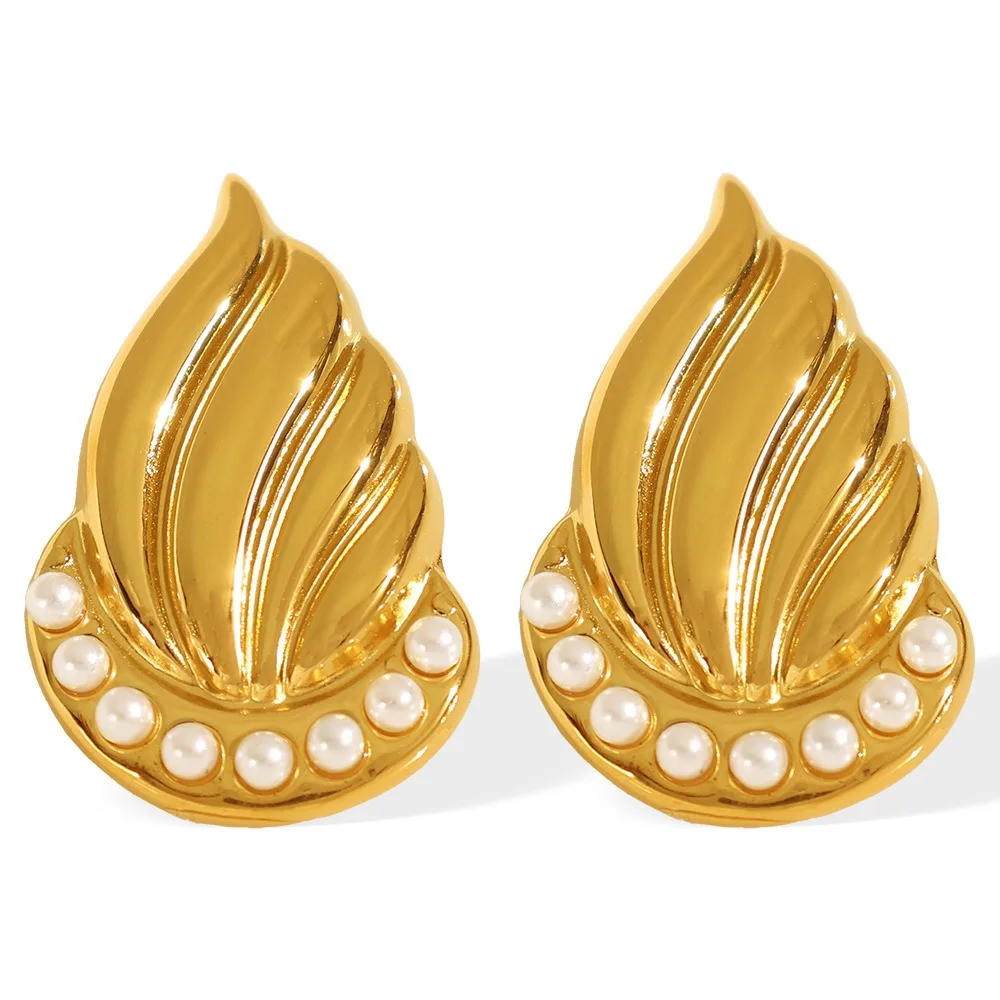European American Geometric Thread Stud Earrings High-End Niche 18K Gold Stainless Steel Non-Fade Pearl Design