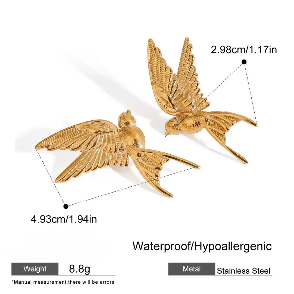 Women's Unique Retro Swallow Stud Earrings Stainless Steel Waterproof Trendy Fashion Jewelry with Peace Dove Design