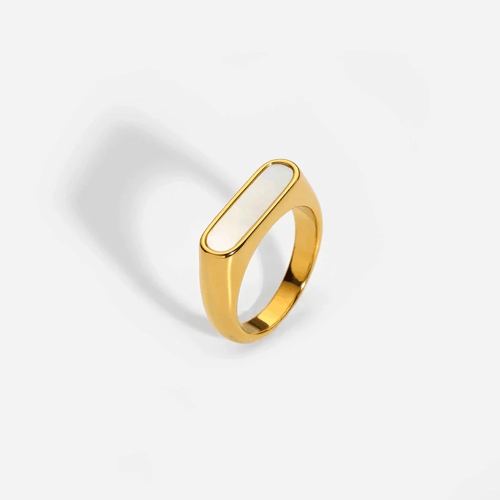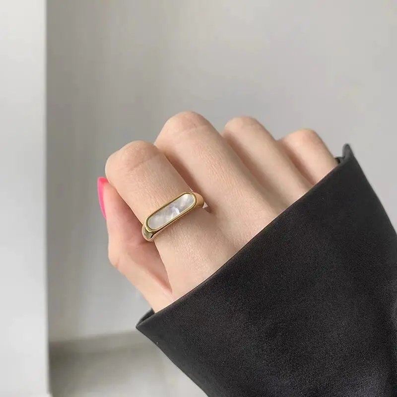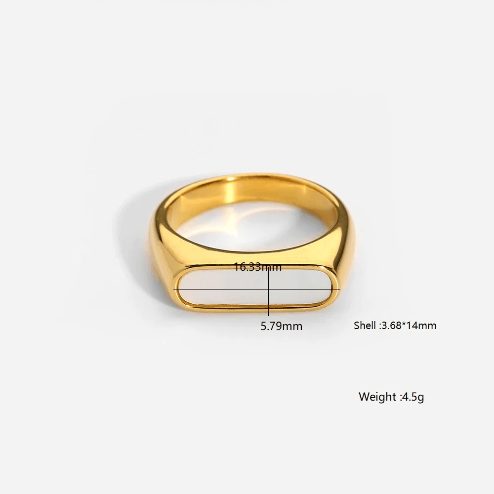 Trendy Dainty 18K Gold Plated Stainless Steel Geometric Rectangle Shell Ring White Dainty Jewelry for Gift