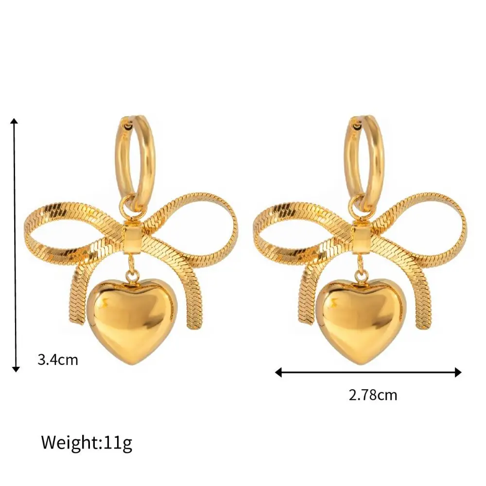 Ladies Trendy Fashion Gold Plated Butterfly Earrings Non-Tarnish Stainless Steel Blade Chain Twisted 3D Heart Design