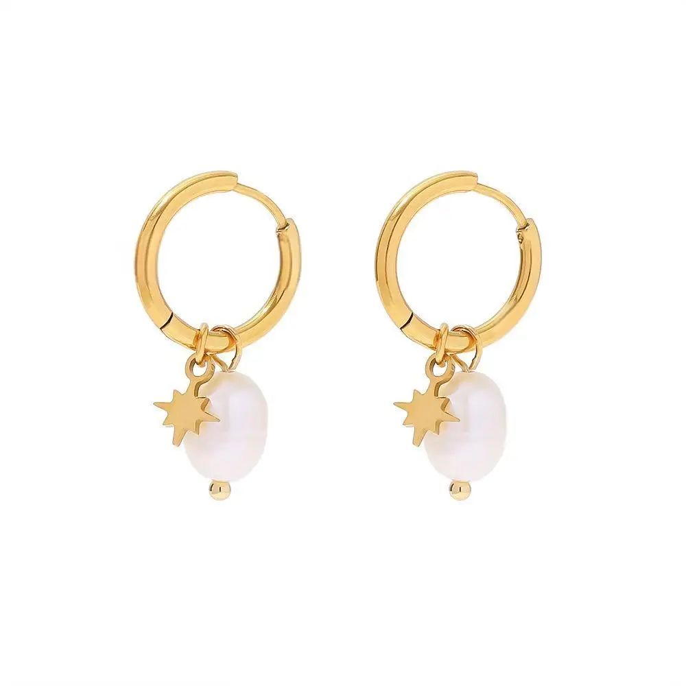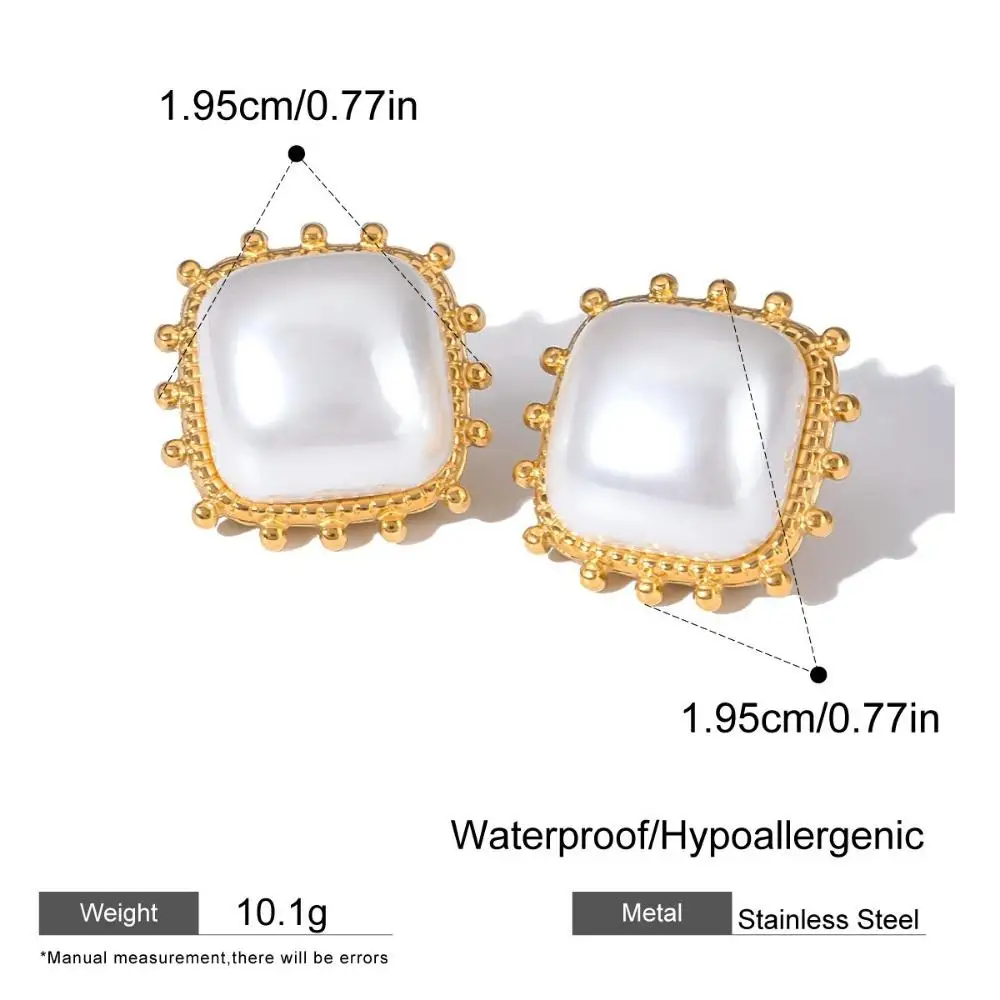 New Designer 18K Gold Plated Boho Stud Earrings Square Shape Pearl Stainless Steel Jewelry Trendy Style