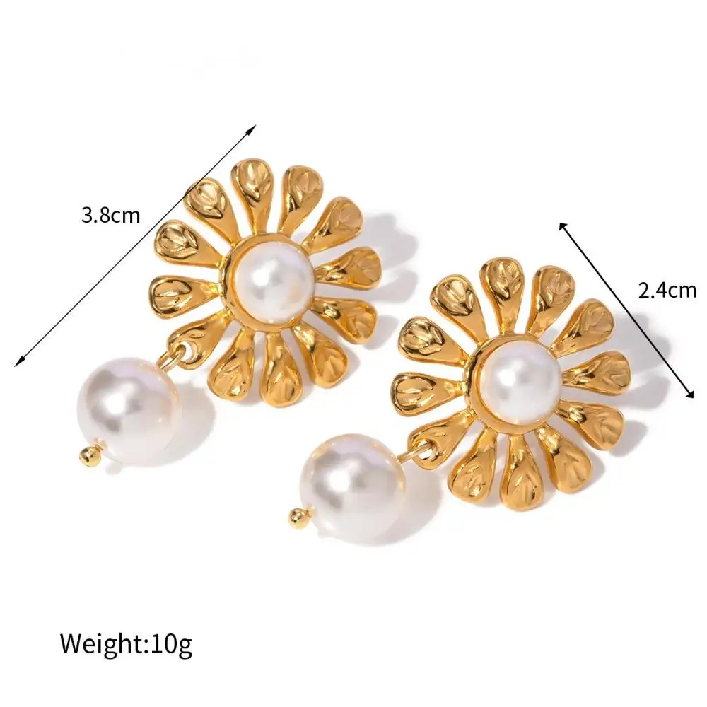 Lovely Stainless Steel Flower Drop Earrings for Women Gold Plated Sunflower Pearl Pendant Trendy Jewelry for Girls