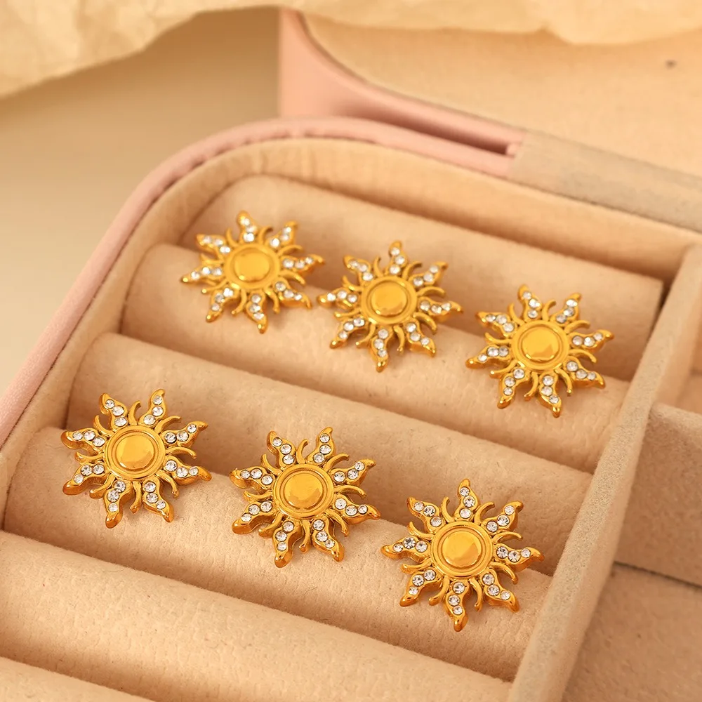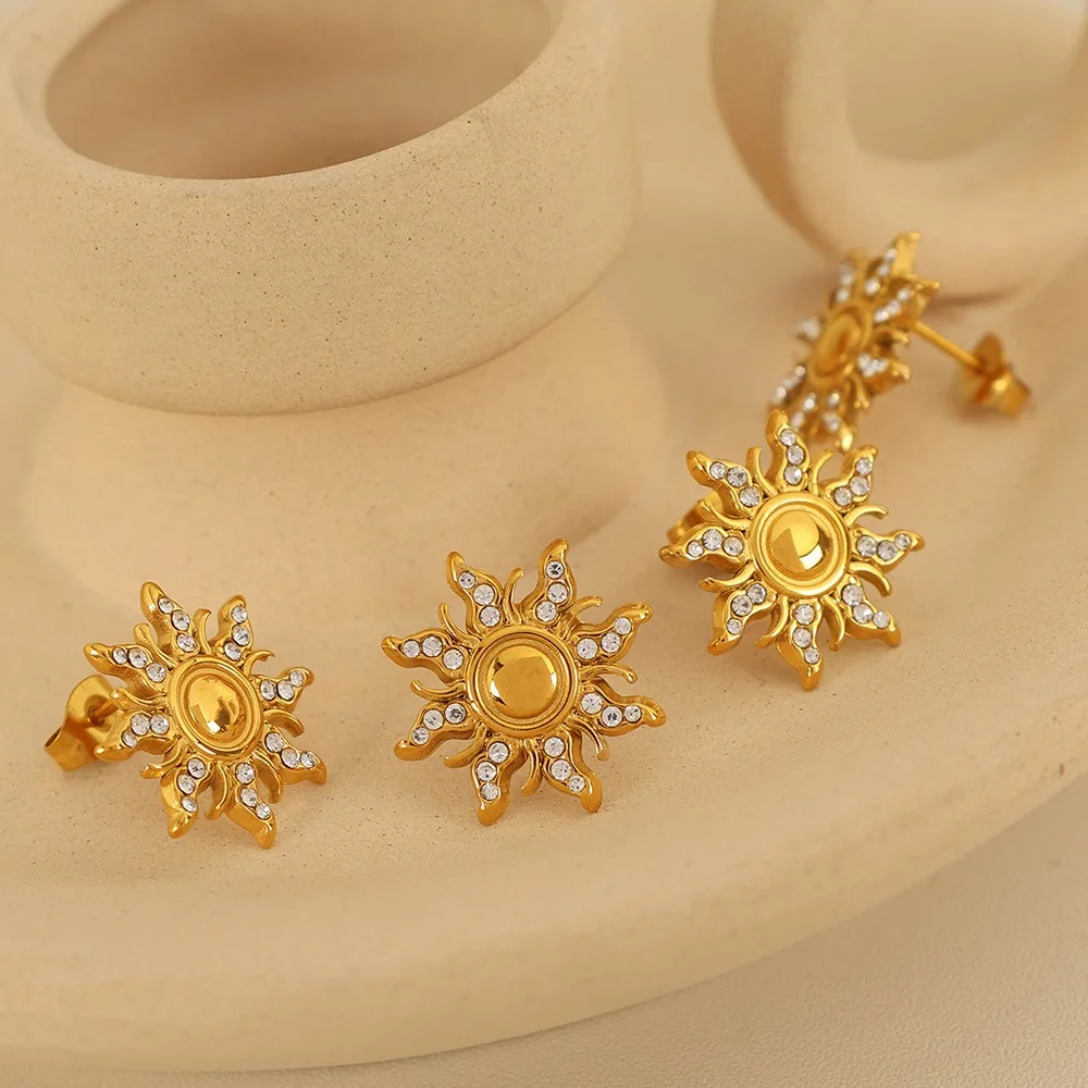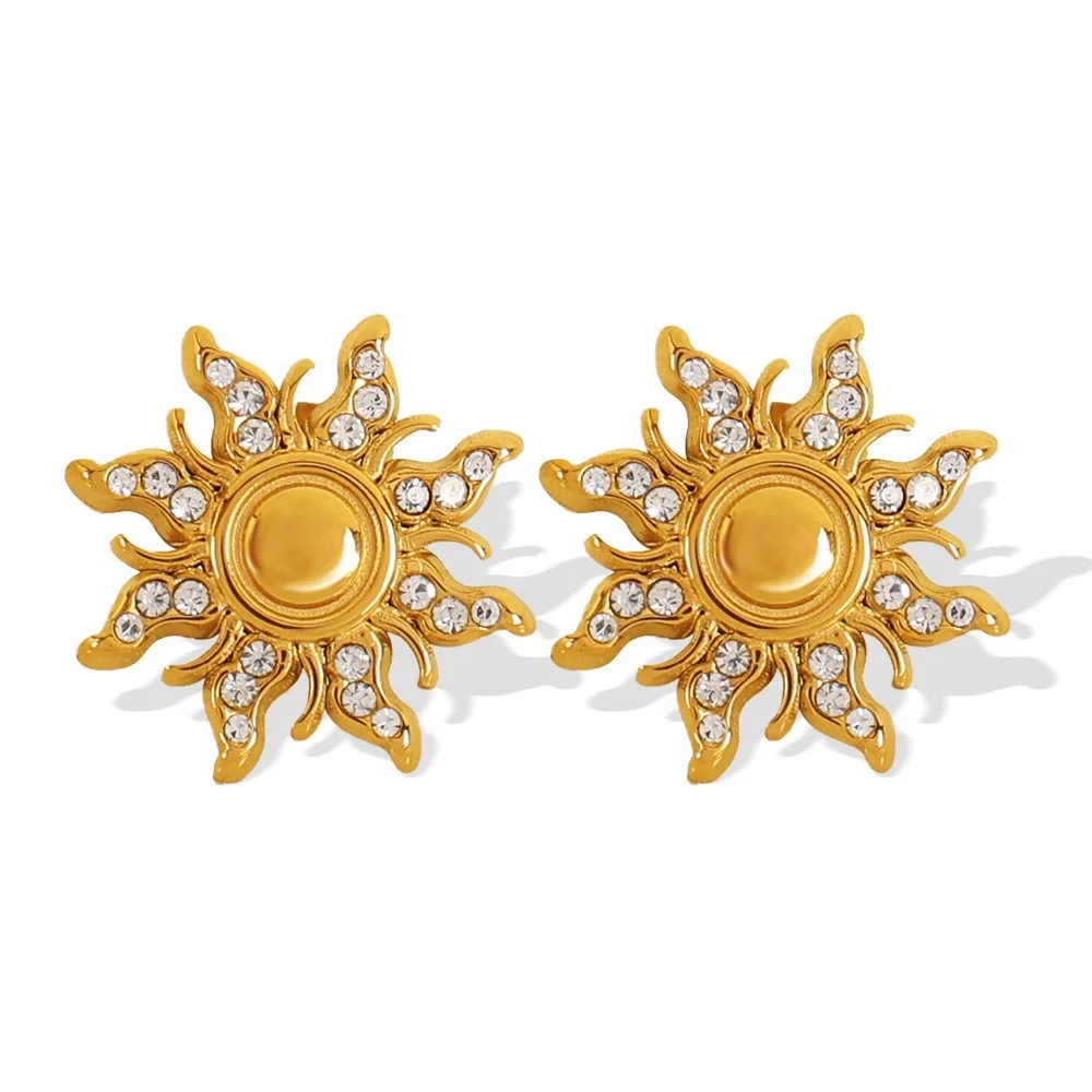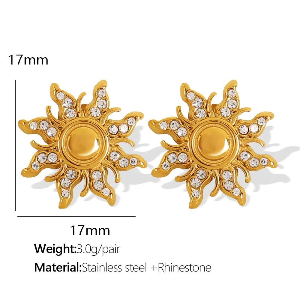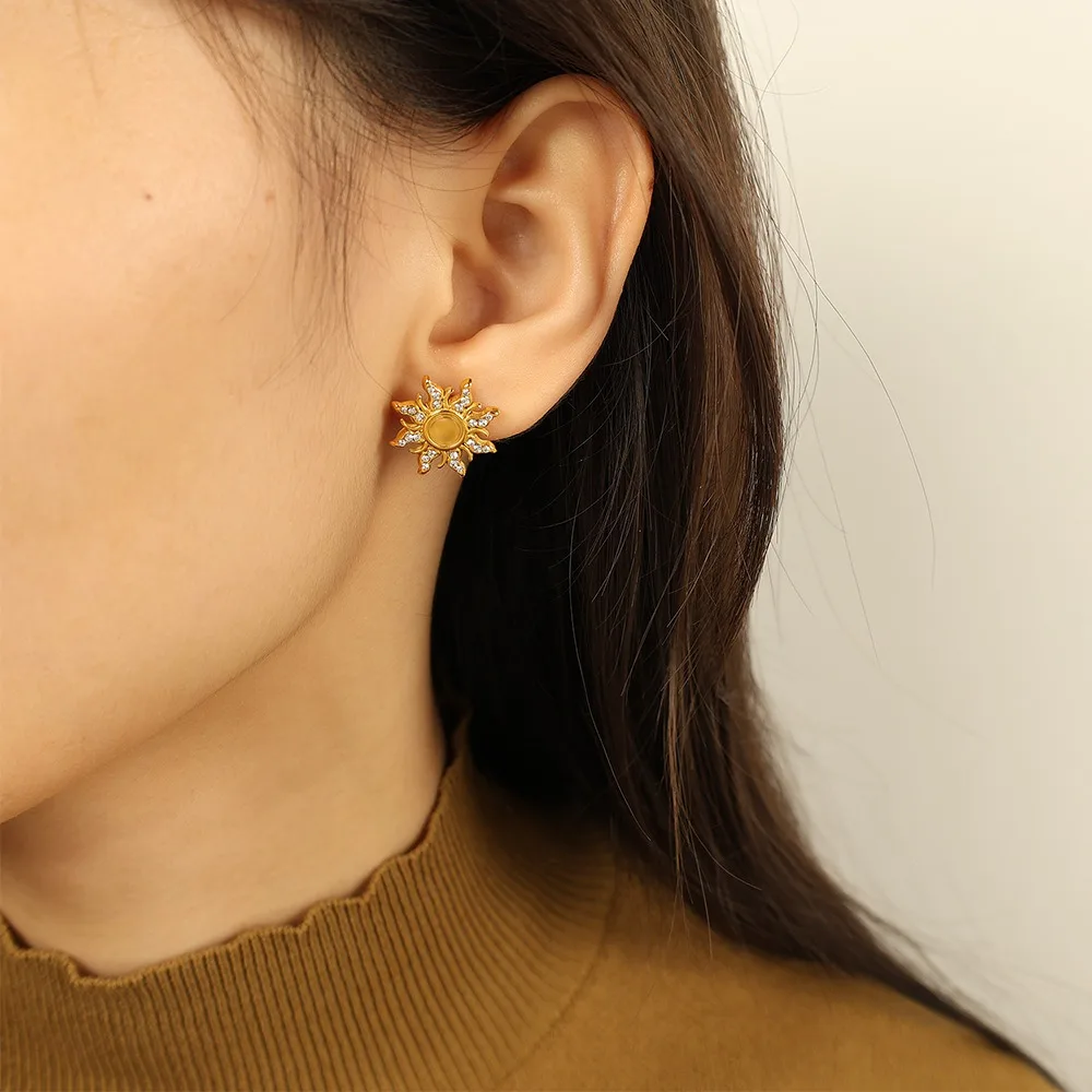 Fashionable Sunflower Stud Earrings 18K PVD Plated Rhinestone Stainless Steel Trendy Jewelry for Women and Girls