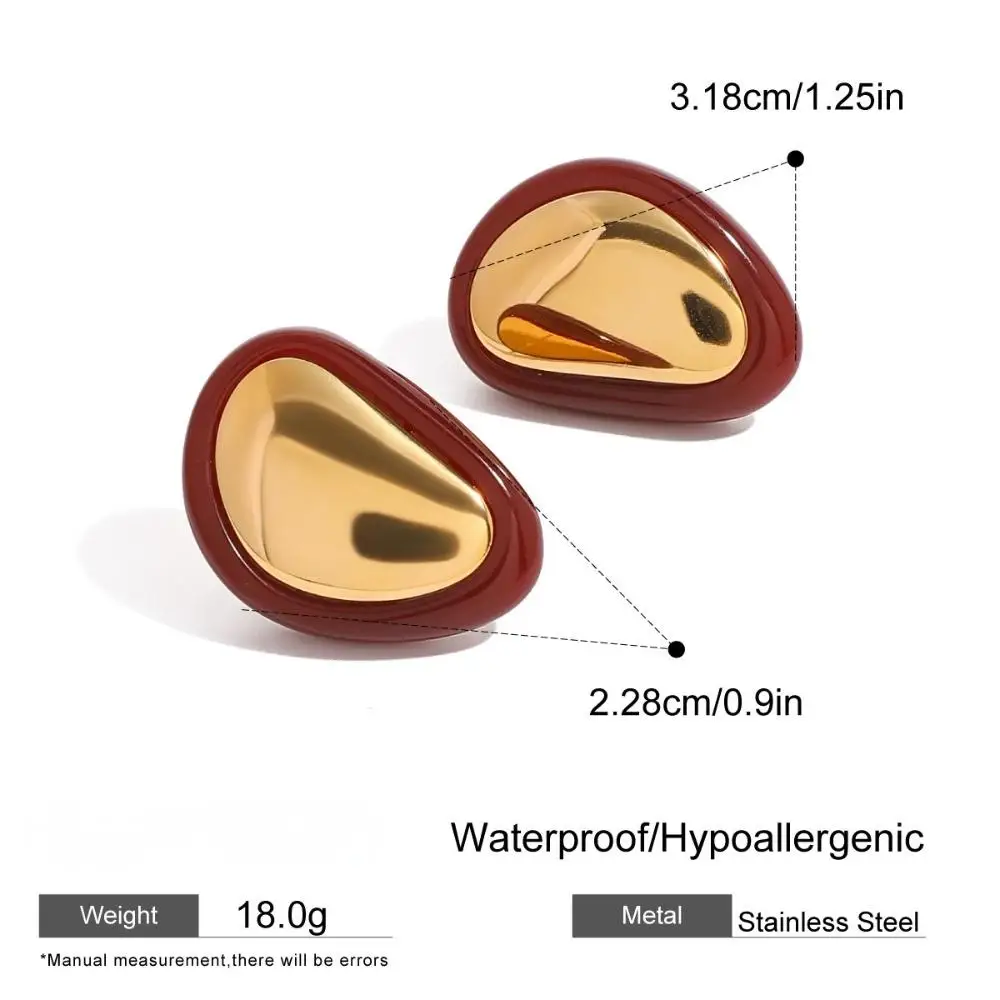 Classic Red Black Oval Stud Earrings 18K PVD Gold Plated Stainless Steel with Resin Unique Trendy Stud Earrings Jewelry