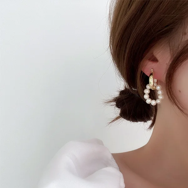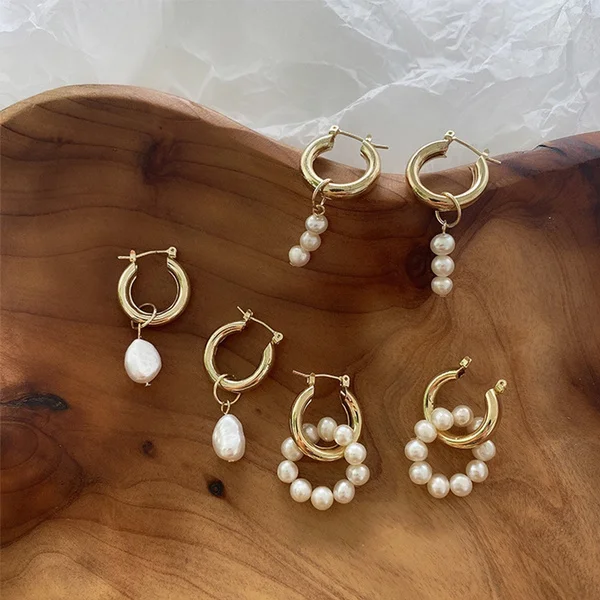 Elegant Vintage Fashion Stainless Steel Hoop Earrings with Freshwater Pearl Pendant Chic and Stylish Temperament Jewelry