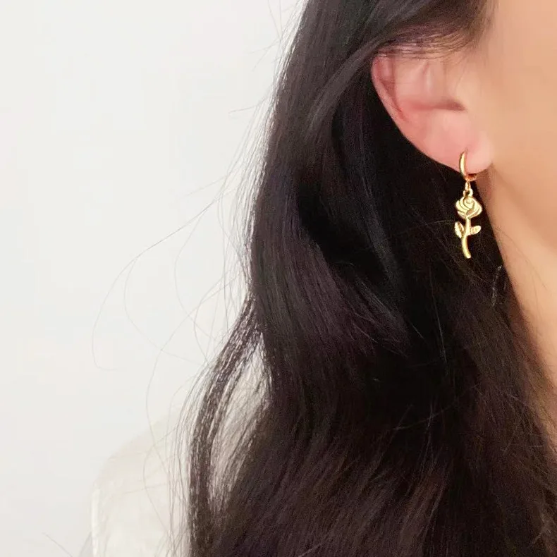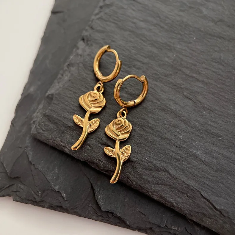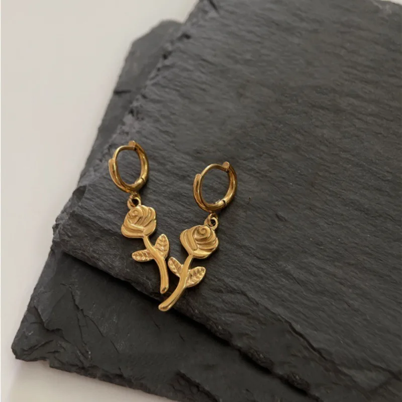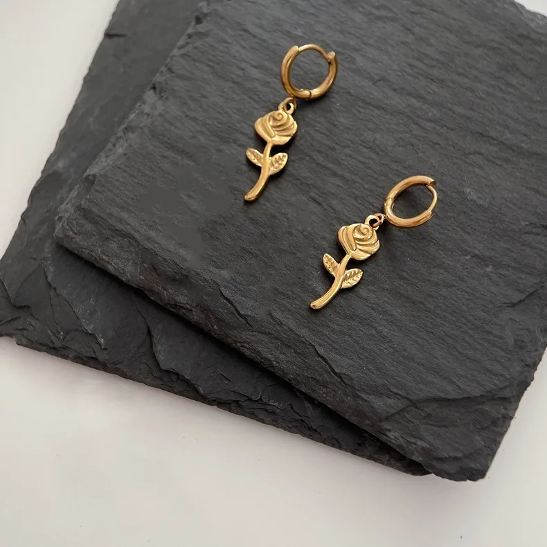 OEM Elegant Rose Flower Earrings Stainless Steel Jewelry 18K Gold Plating French Literary Vintage New No Fading Flower Charm