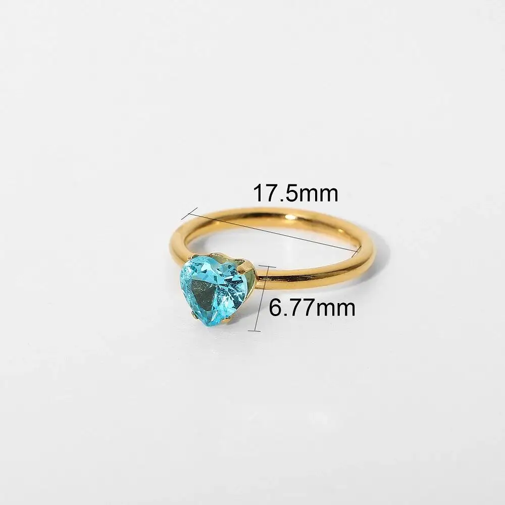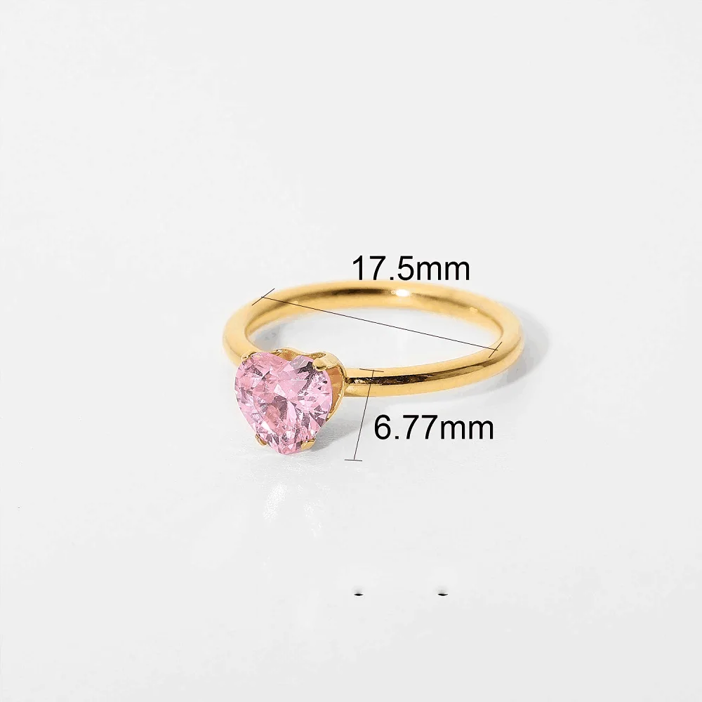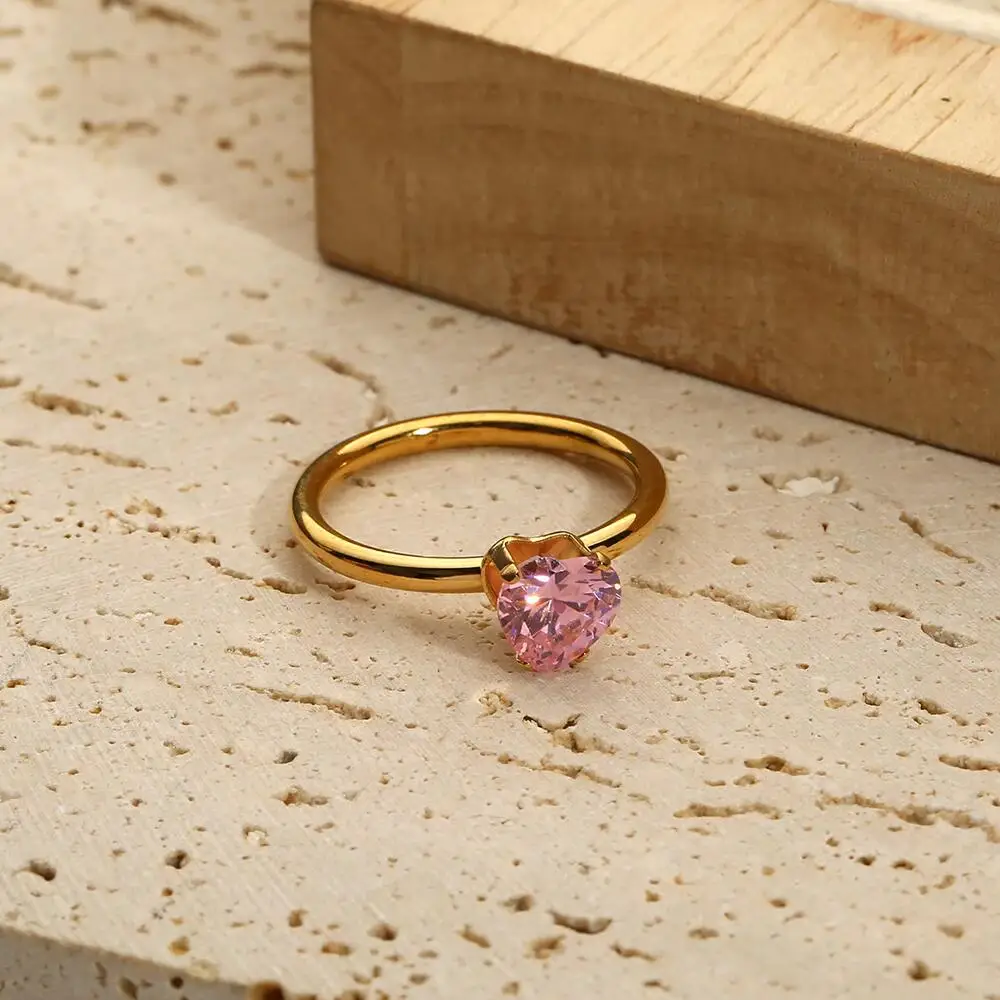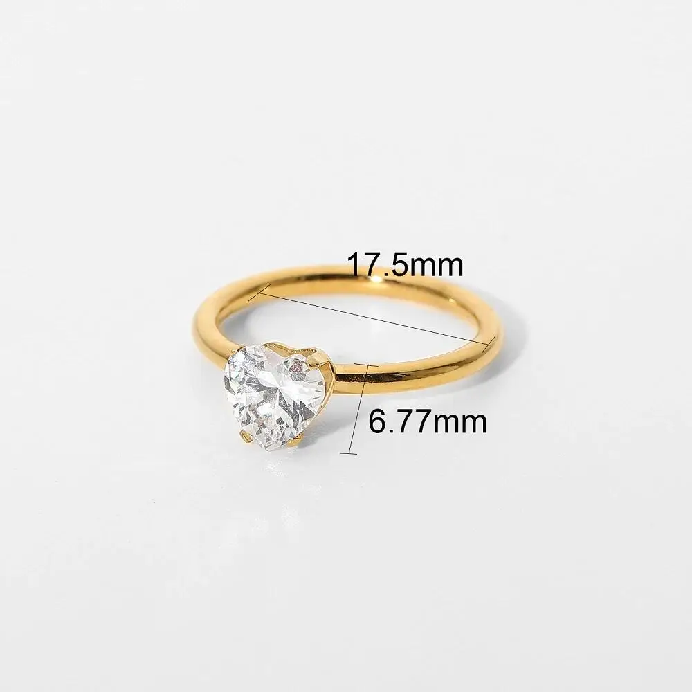 High Quality 316L Stainless Steel 3A Zircon Heart Gold Finger Rings for Women Fashionable Engagement Anniversary Gift