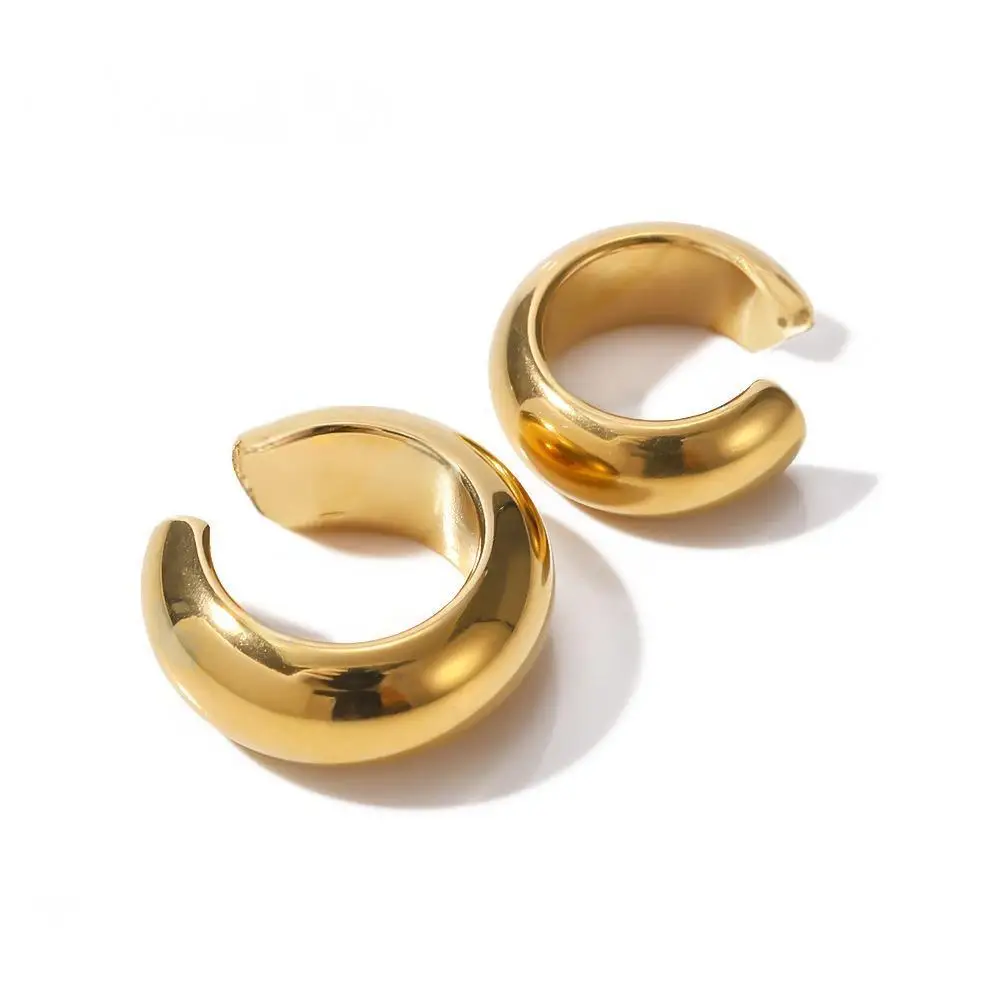 Women's Trendy New Fashion 18K Gold Plated Stainless Steel Waterproof Ear Cuff Earrings Smooth Ear Clip