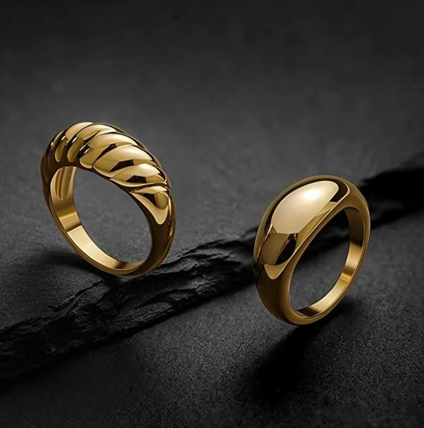 18K Gold Plated Dome Ring Minimalist Croissant Braided Twisted Signet Chunky Ring for Men and Women Stainless Steel Jewelry