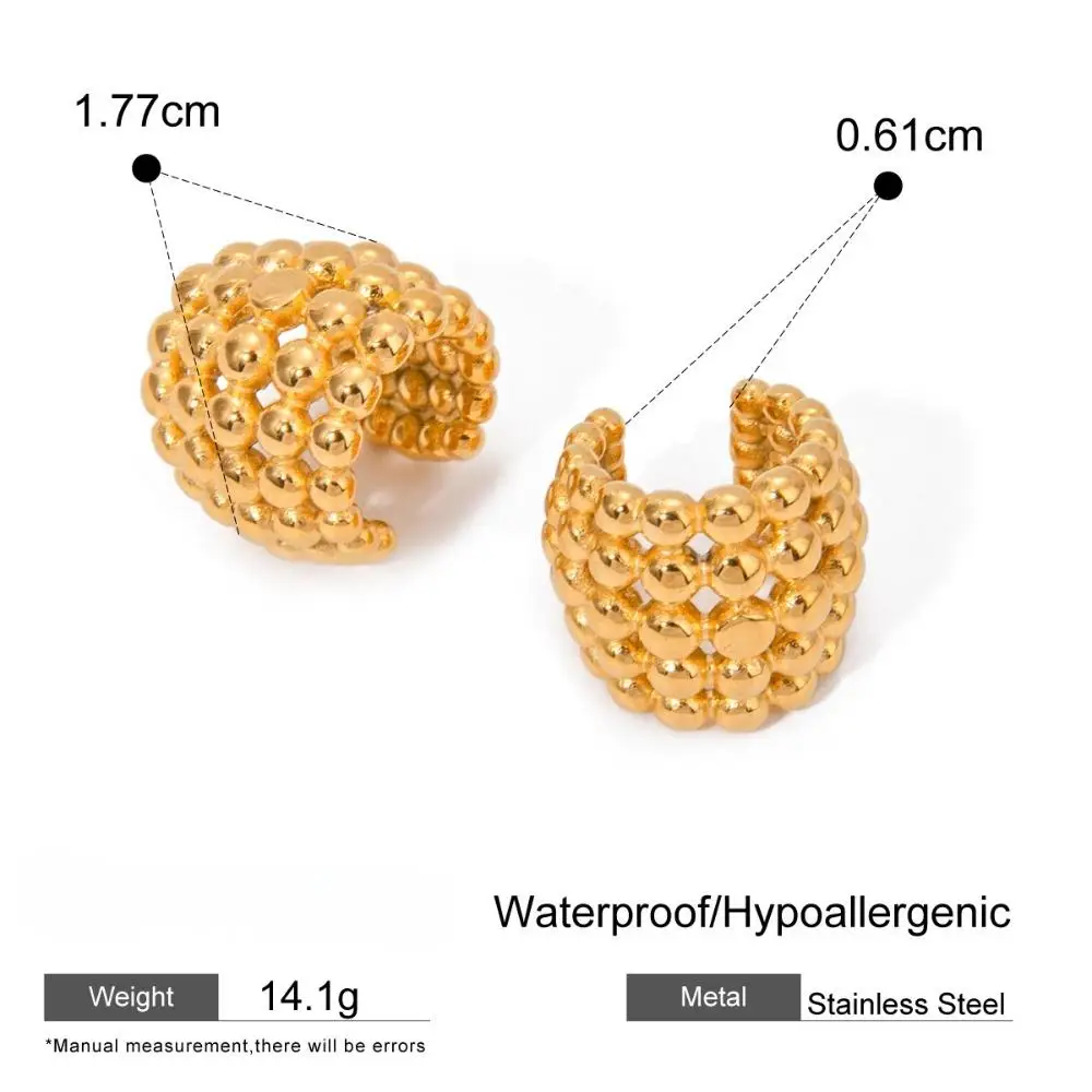 New Hot 18k Gold Plated Stainless Steel Cuff Earrings Hypoallergenic French Hyperbole Fan Bead Ear Clip Elegant Lady Jewelry
