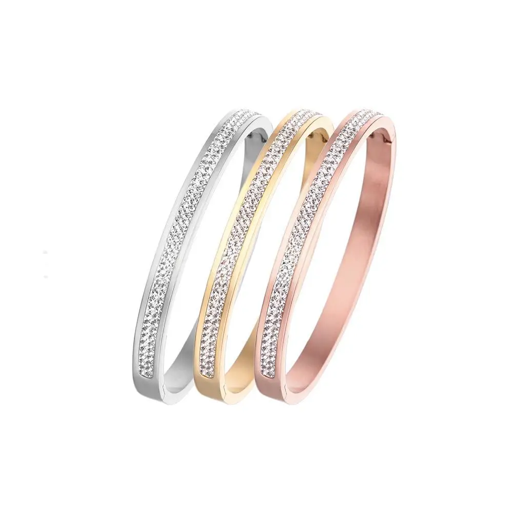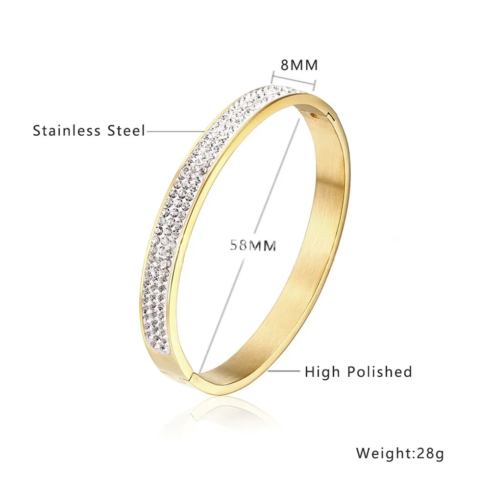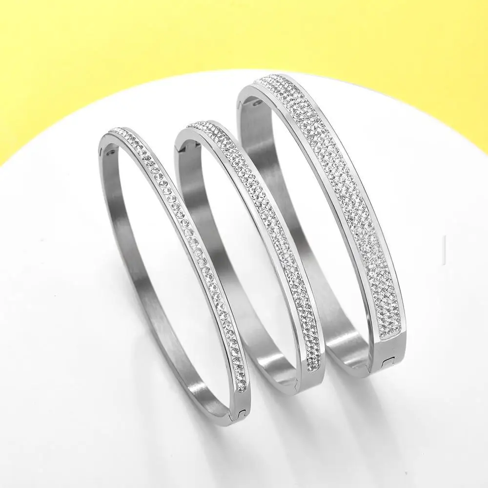 OEM Classic 18k Gold Tennis Embed Cubic Zircon Bracelet for Women Stainless Steel Wrist Bangle for Birthday Fashionable Bangl
