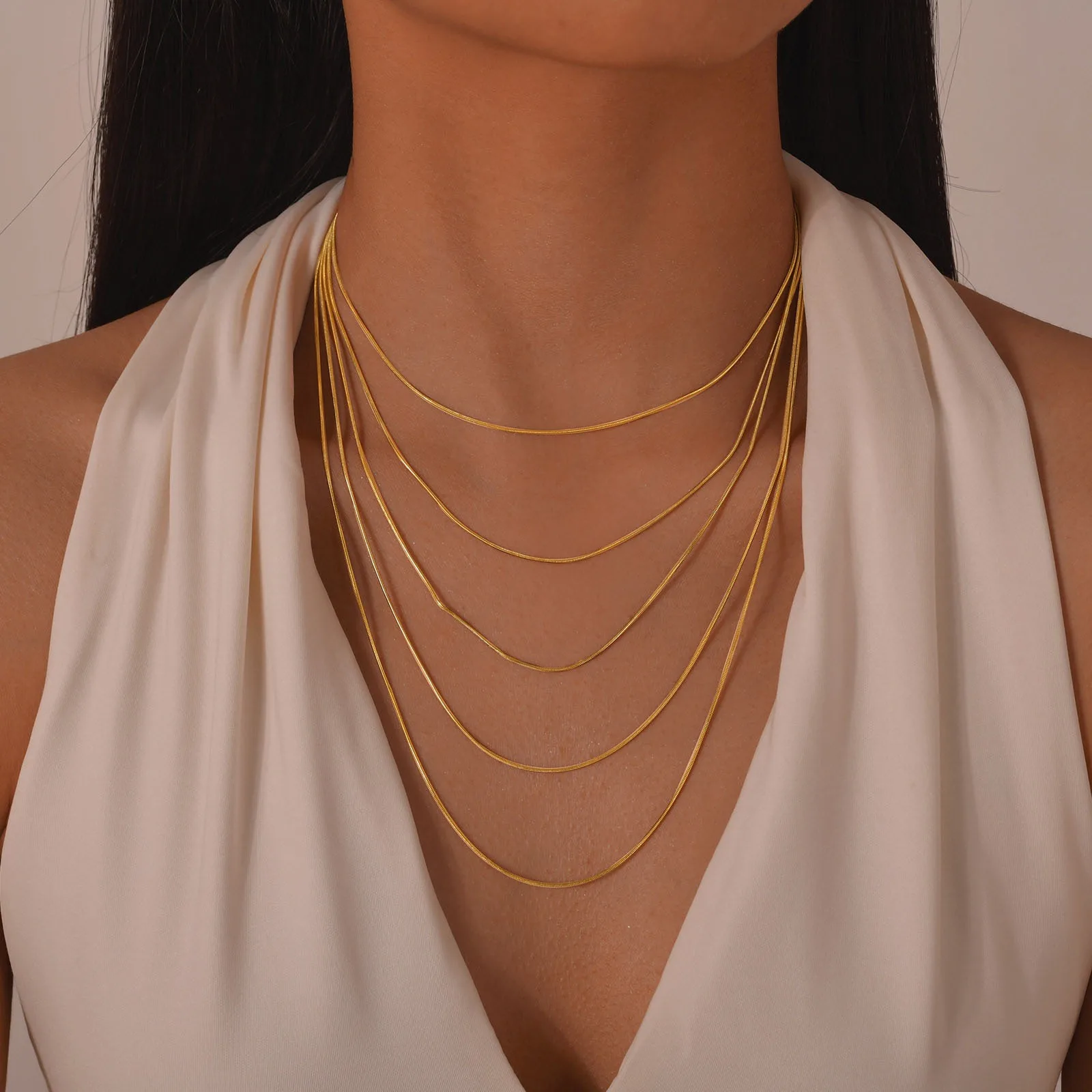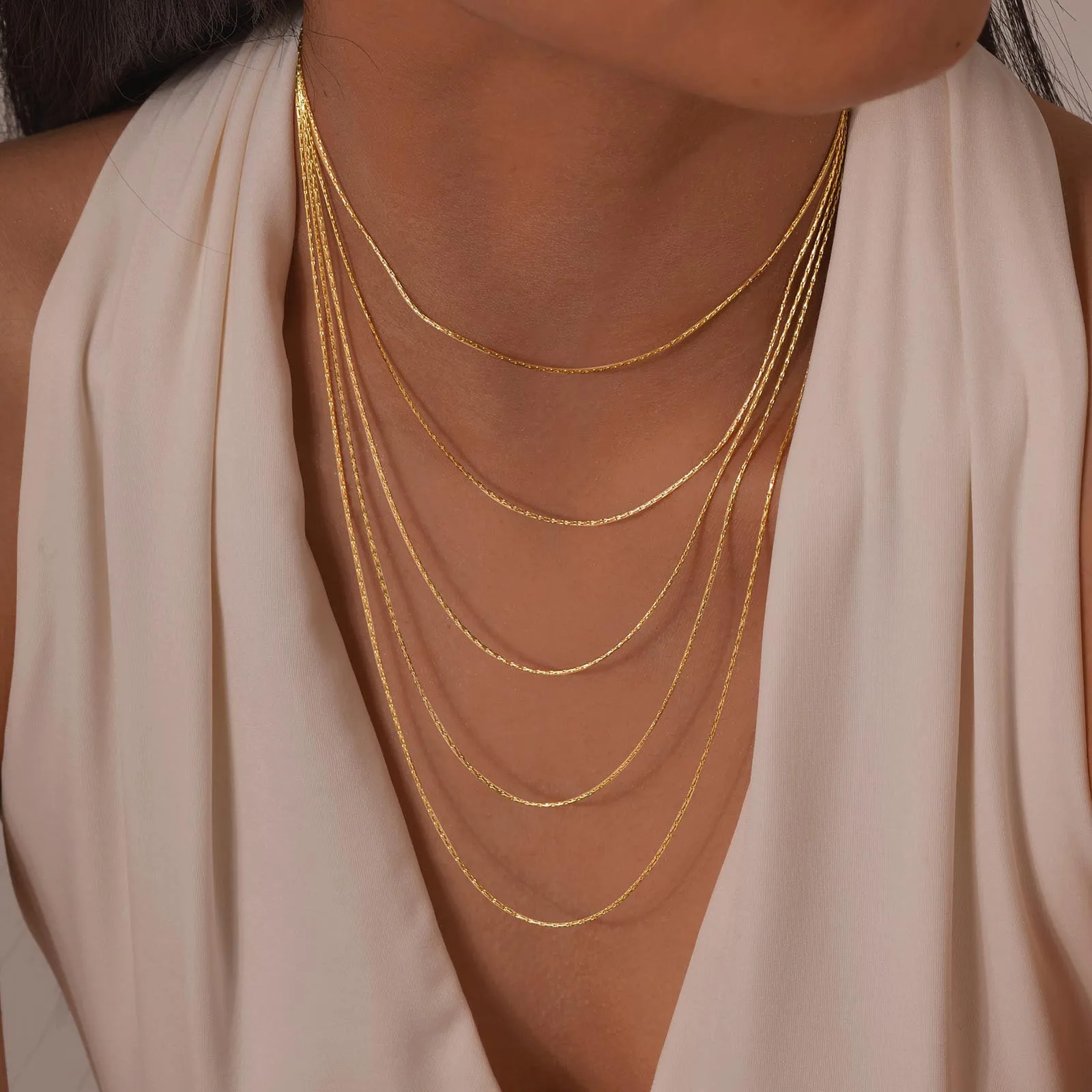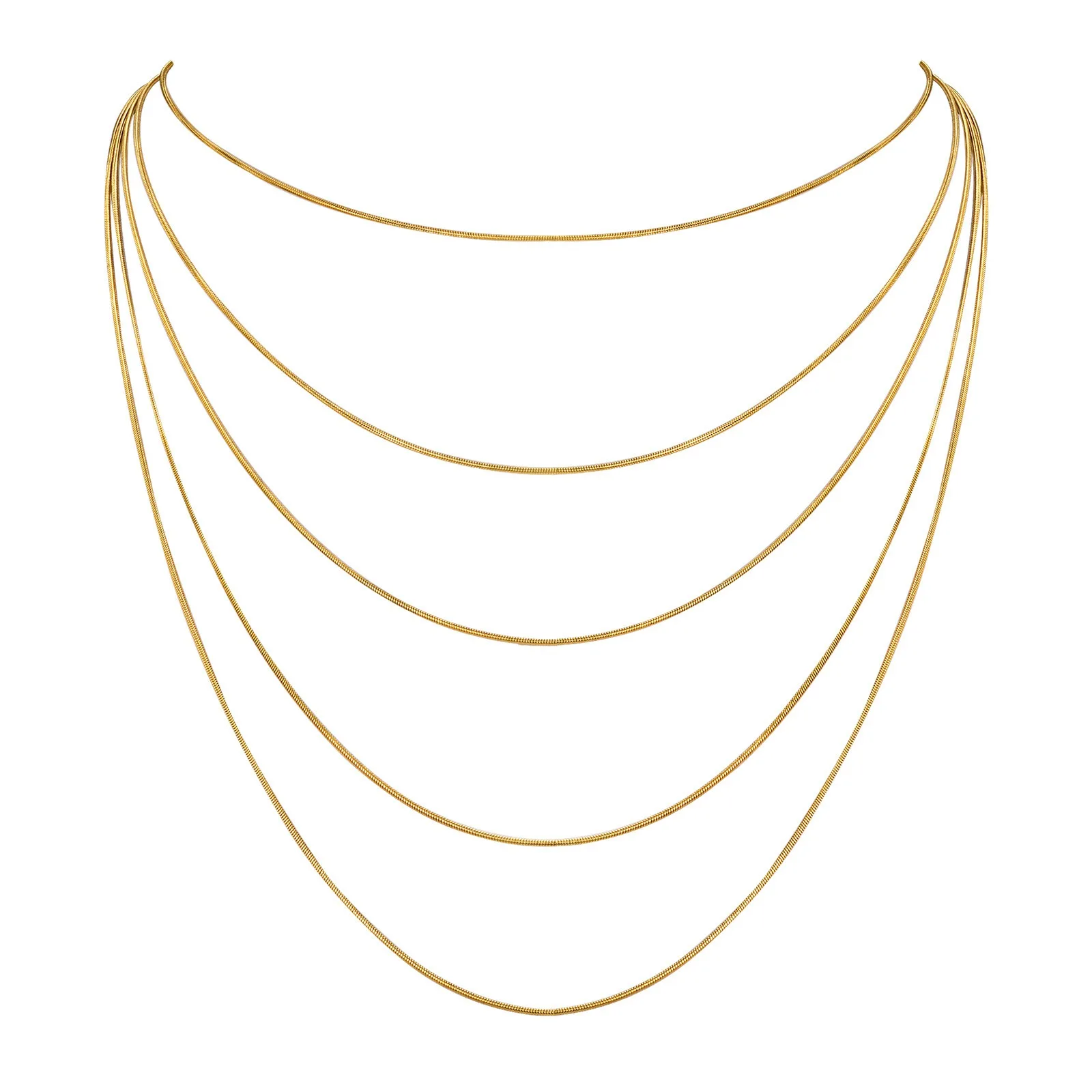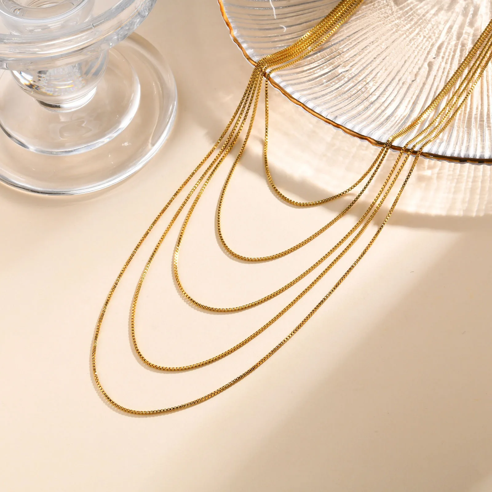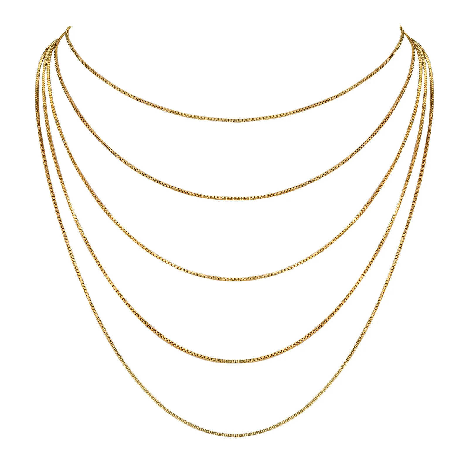 Hypoallergenic 18K Gold Plated 5-Layered Box Chain Necklace for Women Dainty Stainless Steel Sweater Chain Jewelry