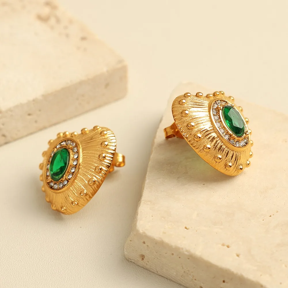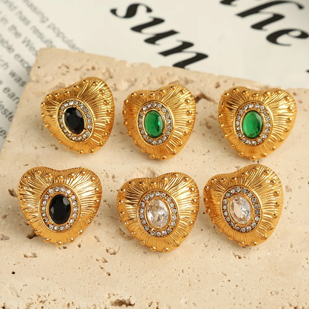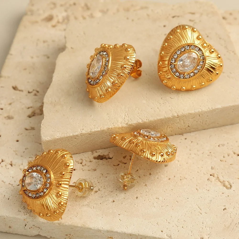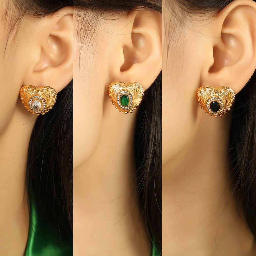 French Style Light Luxury High-End Stainless Steel Hoop Earrings Fashionable Retro with Love Zircon for Commuting
