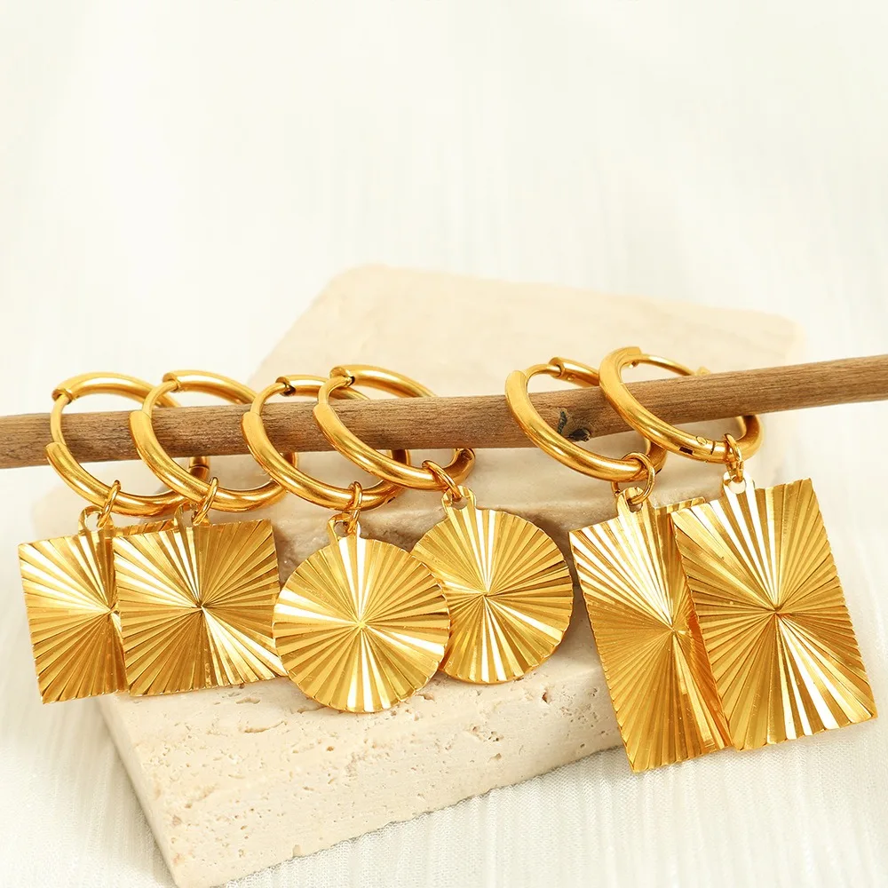 Shiny Polished Stainless Steel Fashion Geometric Jewelry Trendy Dangle Earrings Pendant Hoop Earrings Chic Dangle Charms for