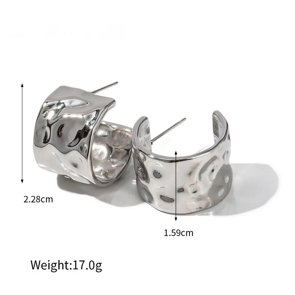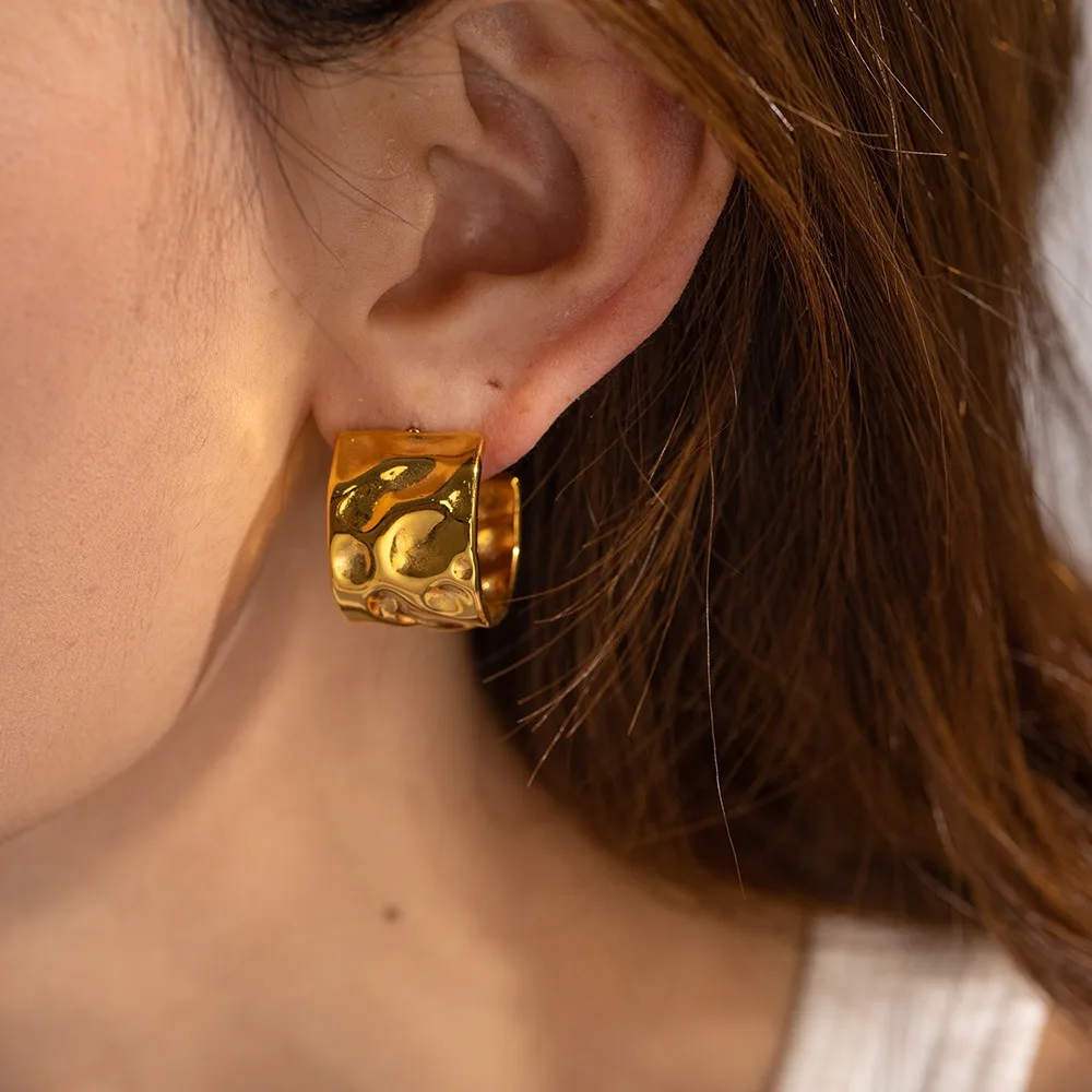 Trendy Style PVD Plated Hammered CC Hoop Earrings for Women Stainless Steel Chunky Ear Accessories with Tarnish-Free Design