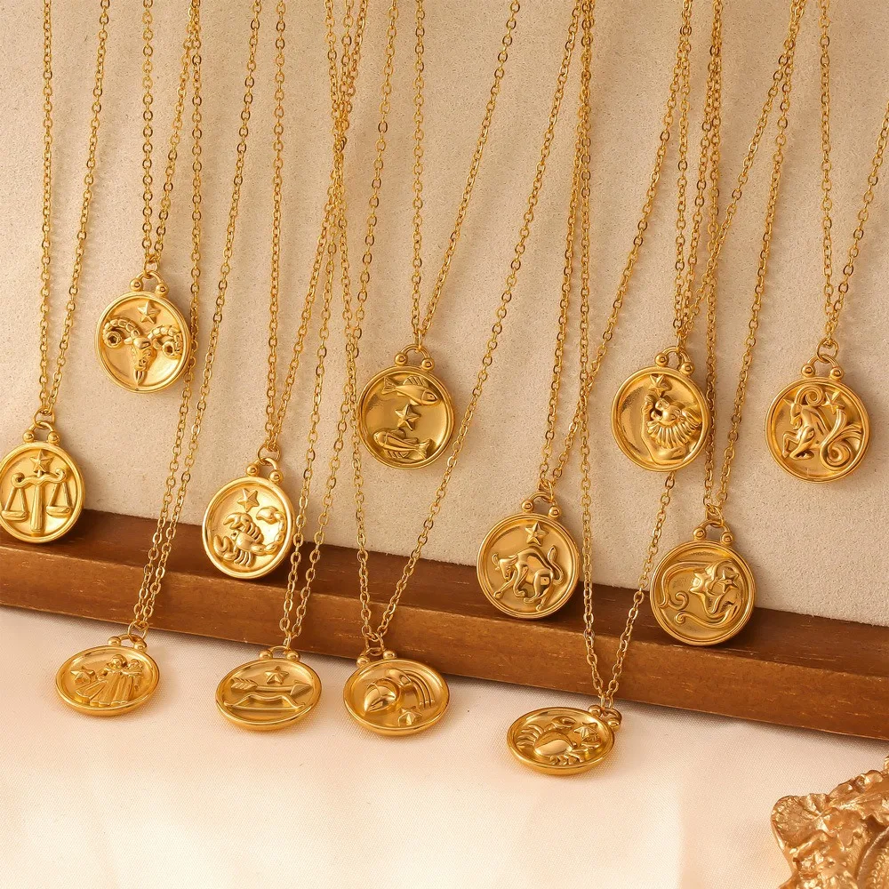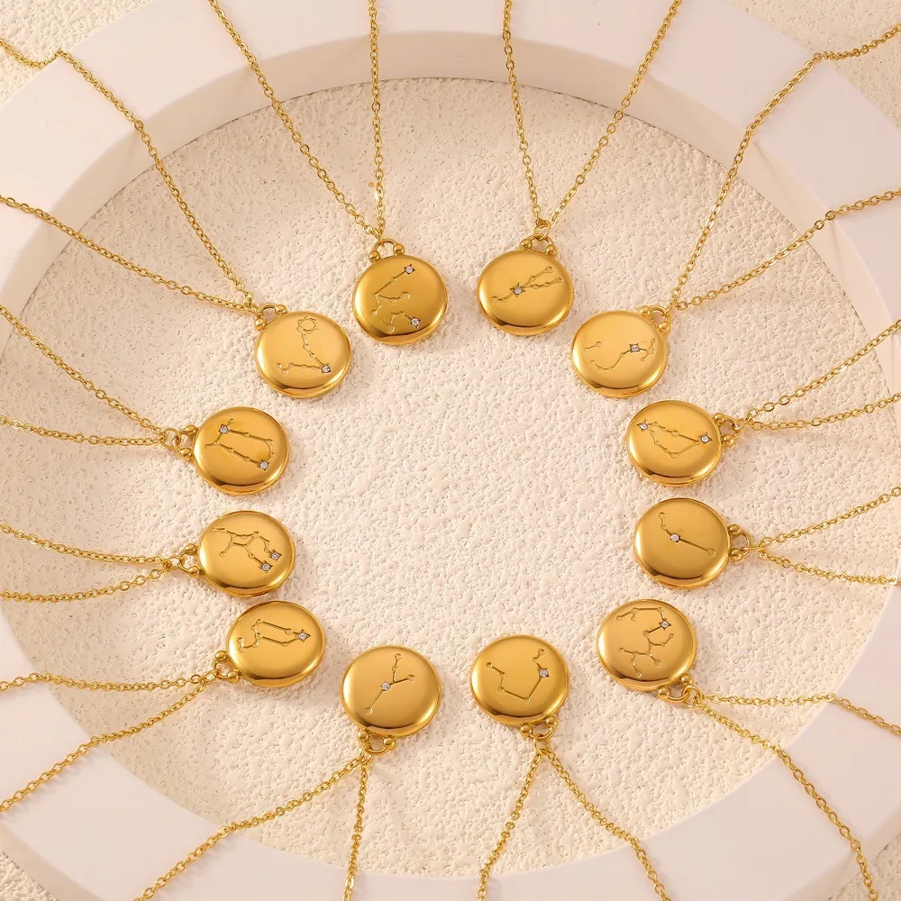OEM Minimalist 12 Zodiac Signs Stainless Steel Necklace with Zircon Pendant Personalized Jewelry for Women