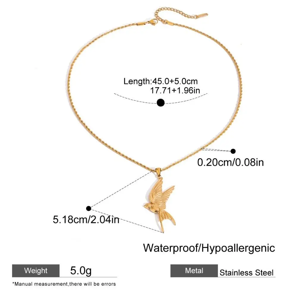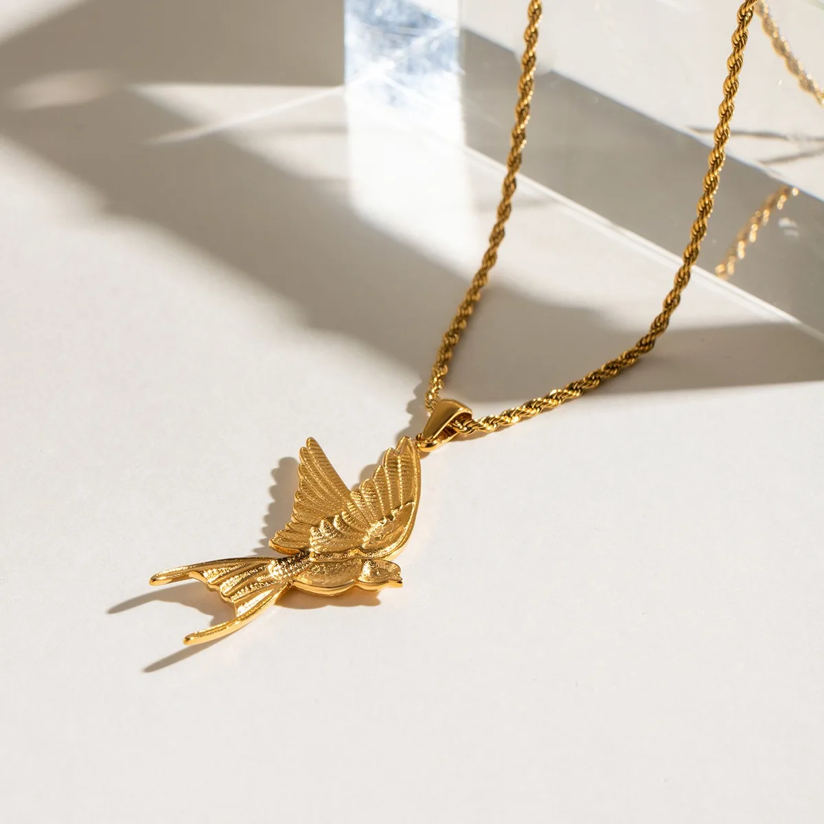 New Arrival Dainty 18k Gold Plated Bird Necklace Dove of Peace Sweater Chain Pendant for Women Made of Stainless Steel