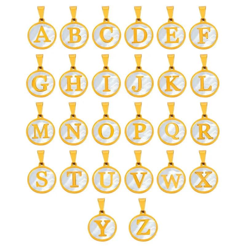 OEM Custom 26 Alphabet Shell Disc Pendant Hot-Selling 18K Gold Stainless Steel Initial Jewelry Jewelry Findings Components
