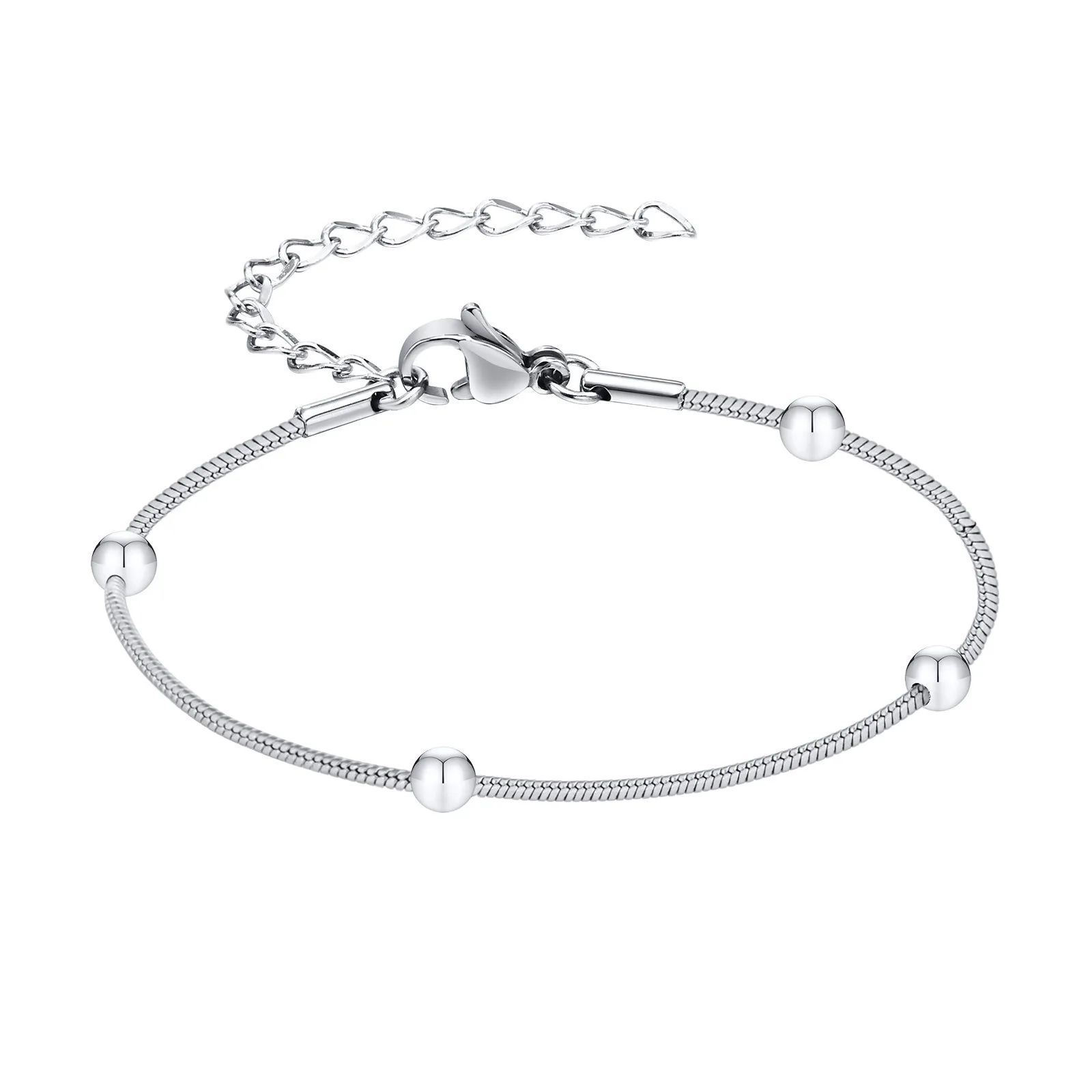 Women's Dainty Gold Plated Snake Chain Bracelet Minimalist High-Polished Stainless Steel Bead Chain Trendy Adjustable Style