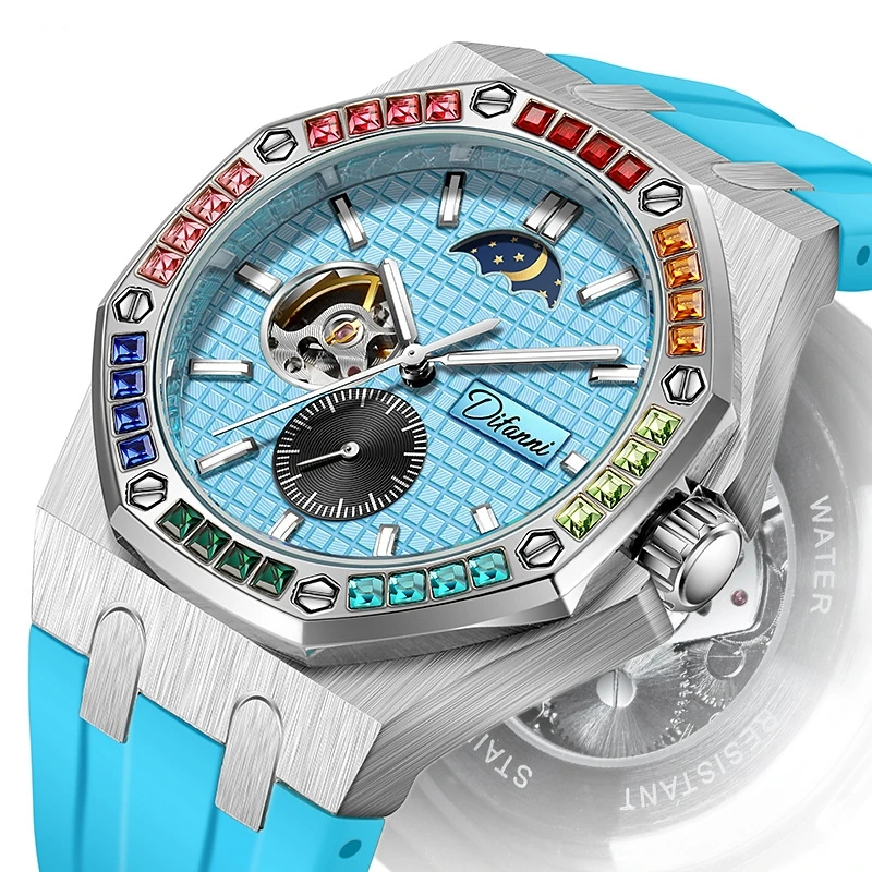 Rubber Strap Multi-function Moon Phase Luminous Waterproof Mechanical Luxury Watches Men's Factory OEM Custom Automatic Watch