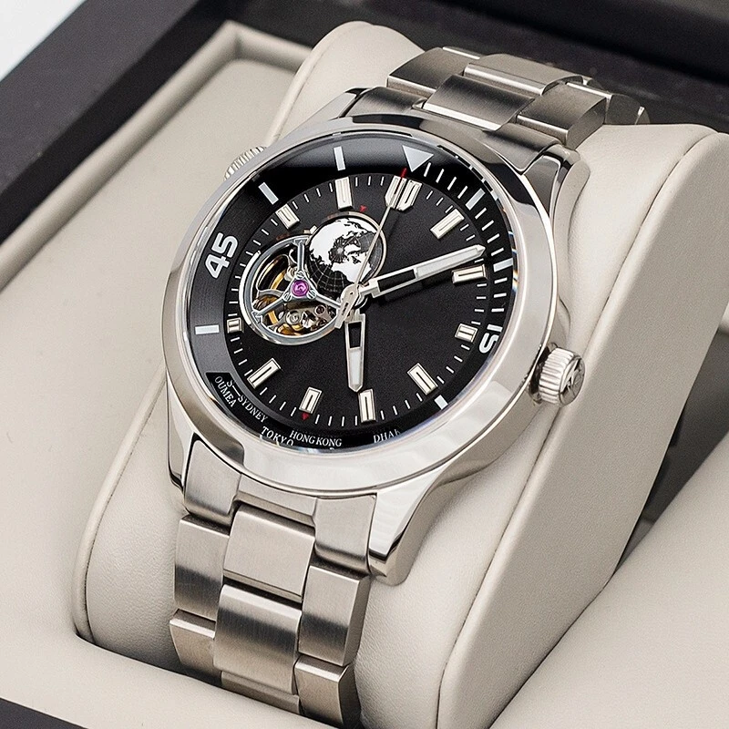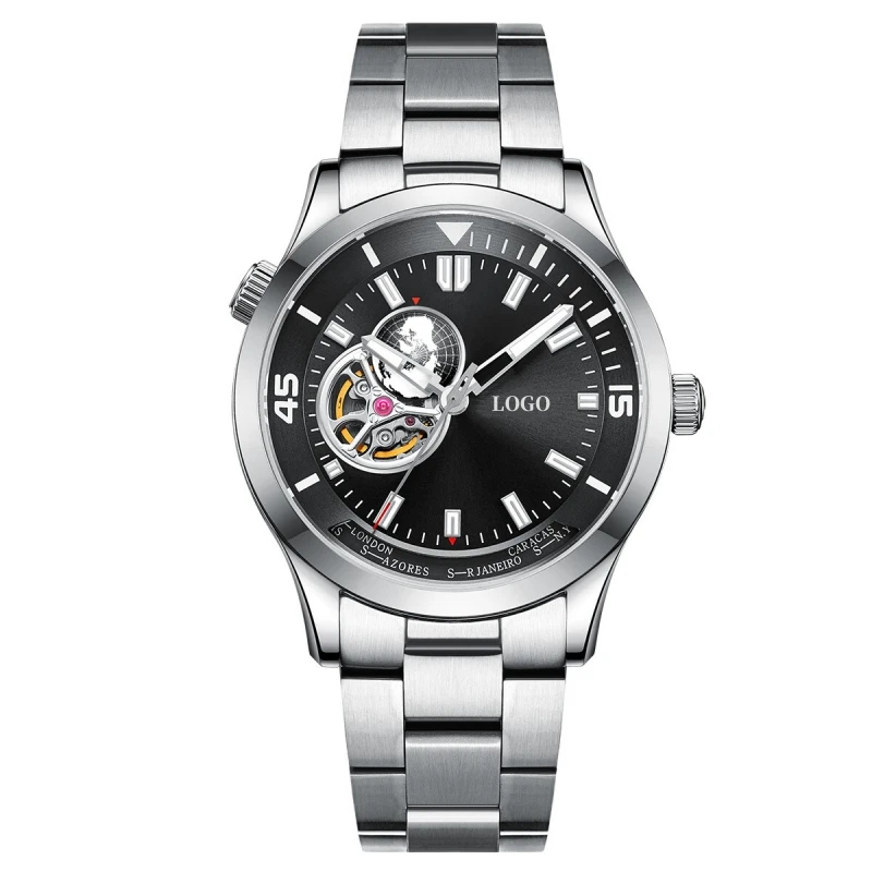 OEM Customized Mechanical Men's Watch Fully Automatic Hollow Business Casual Men's Earth Watches Hangzhou Tourbillon Watch