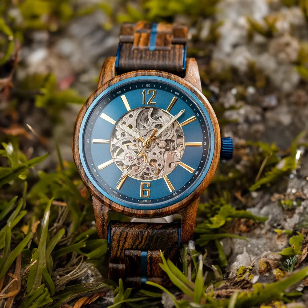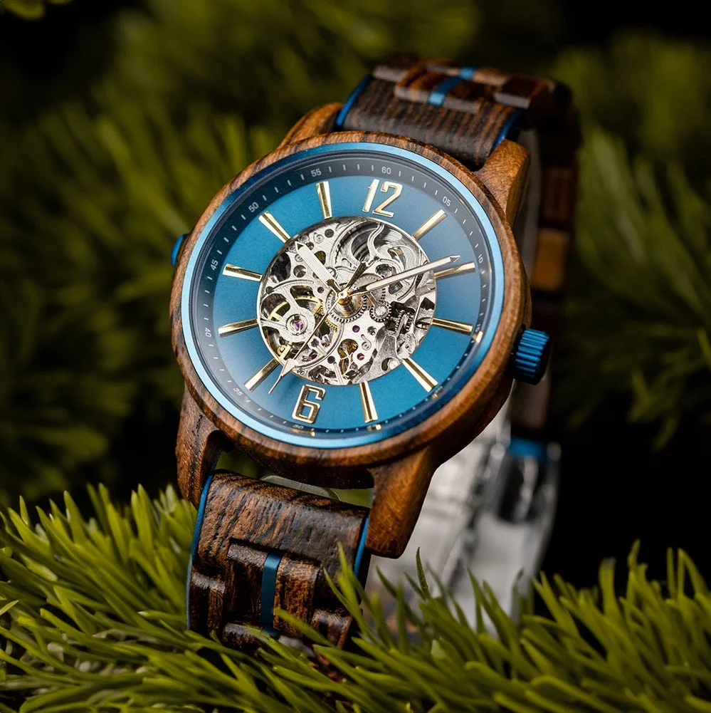 Wooden Mechanical Watch Mens Automatic Wooden Wristwatch Personalized Watch for Man