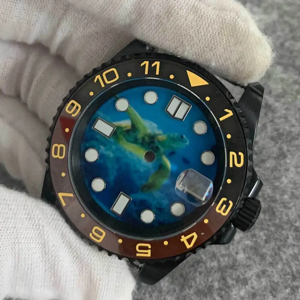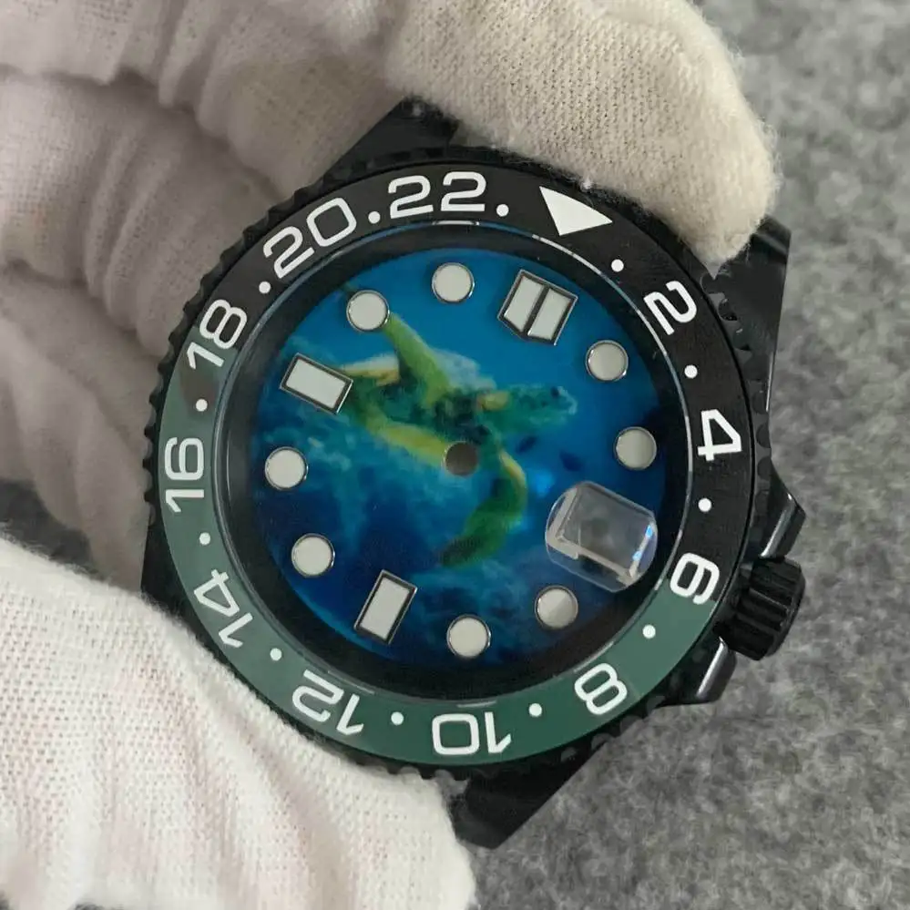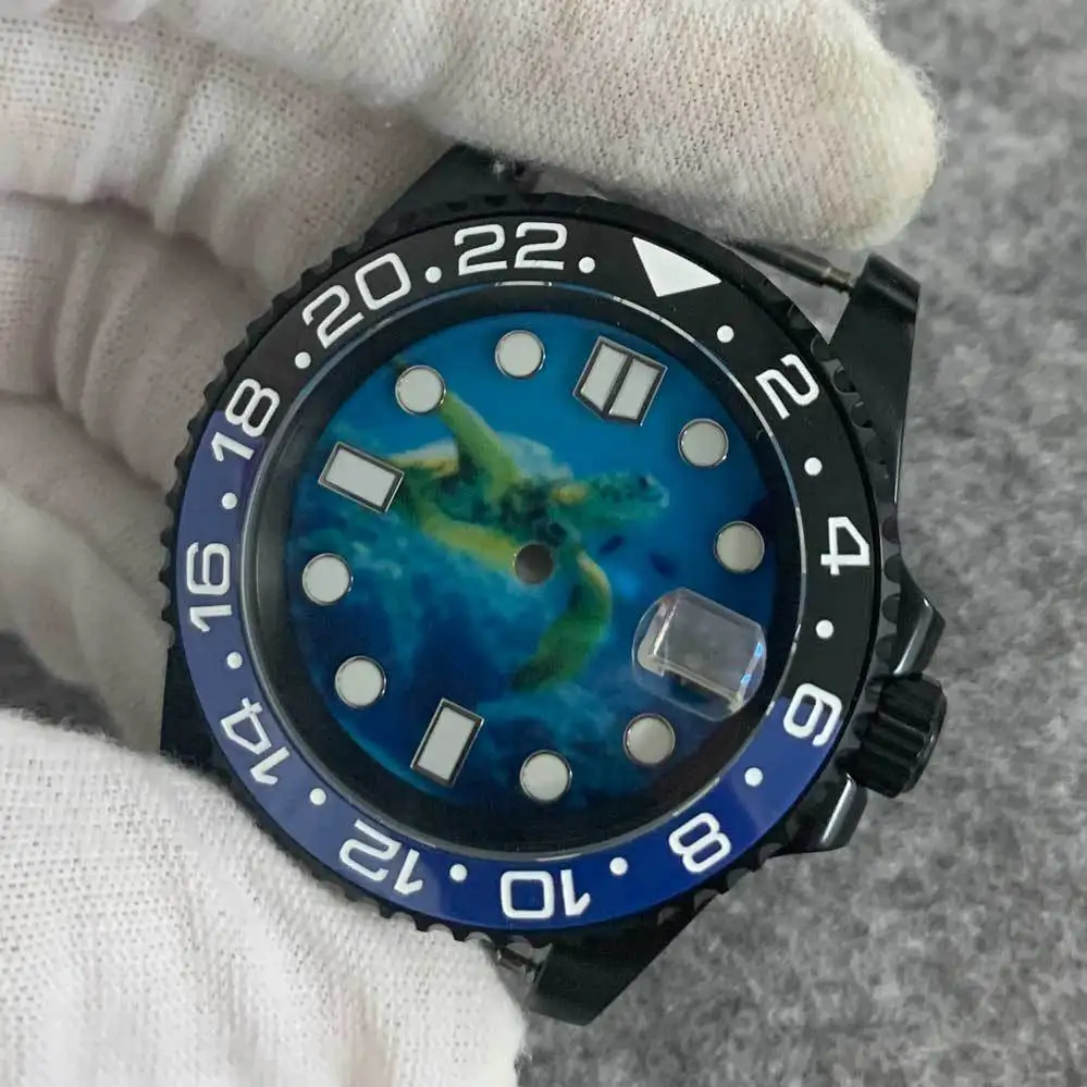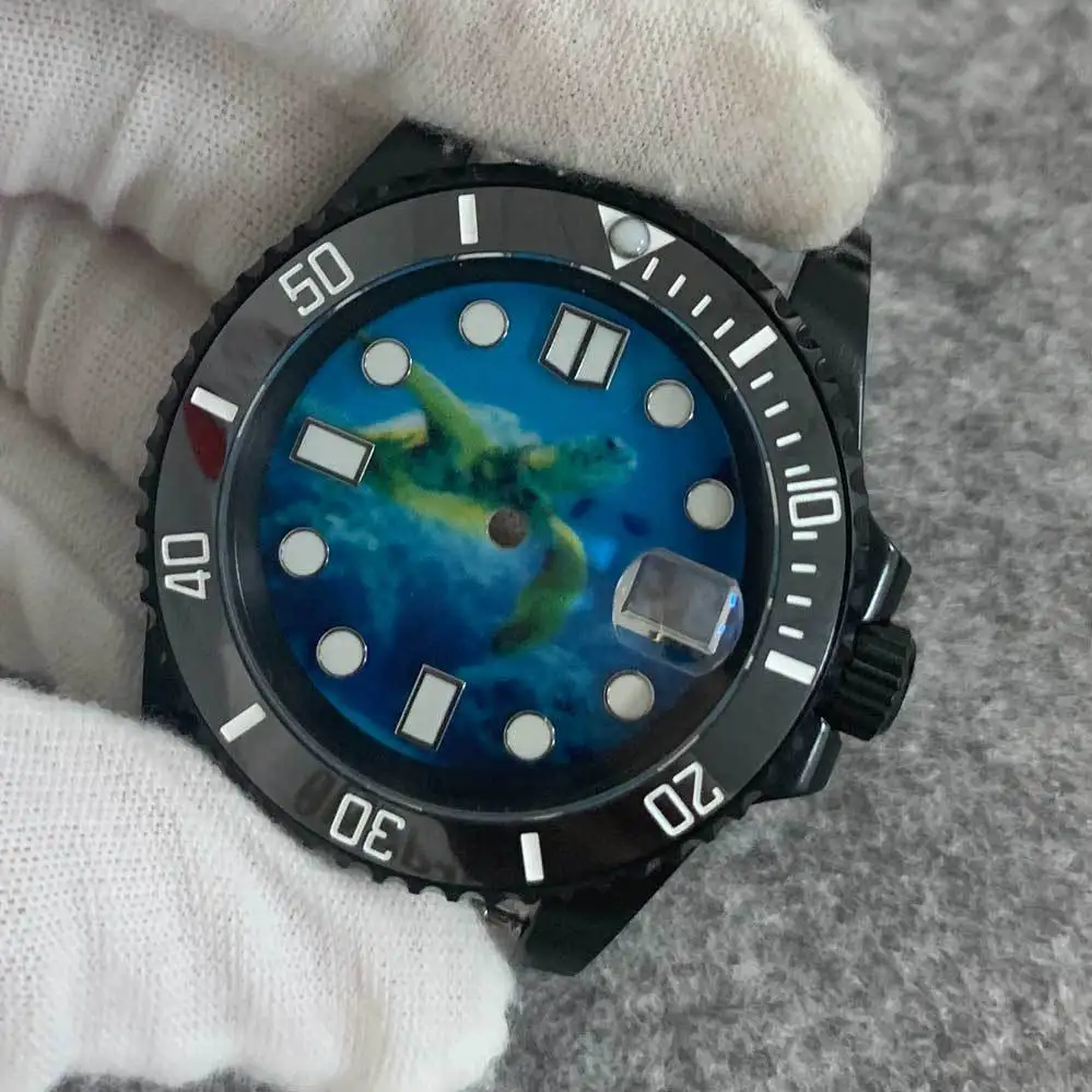OEM Assembled with NH35 Movement Black case Blue Kanagawa Dial Modified and Adapted to Watch Literal Accessories