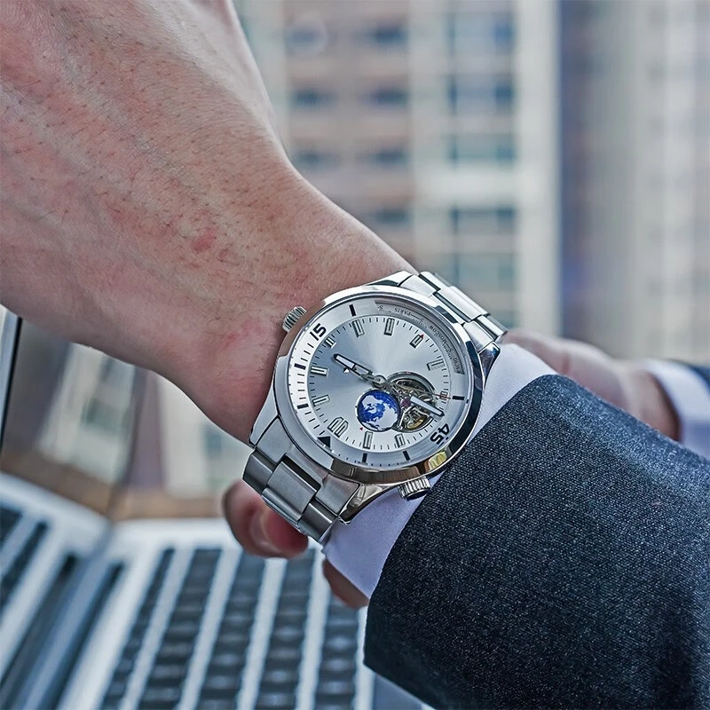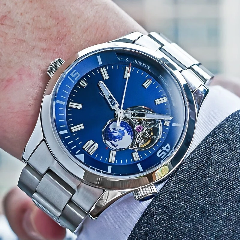 OEM Customized Mechanical Men's Watch Fully Automatic Hollow Tourbillon Business Casual Men's Earth Watches