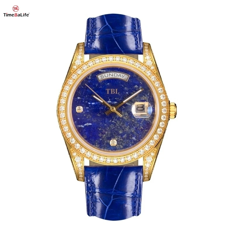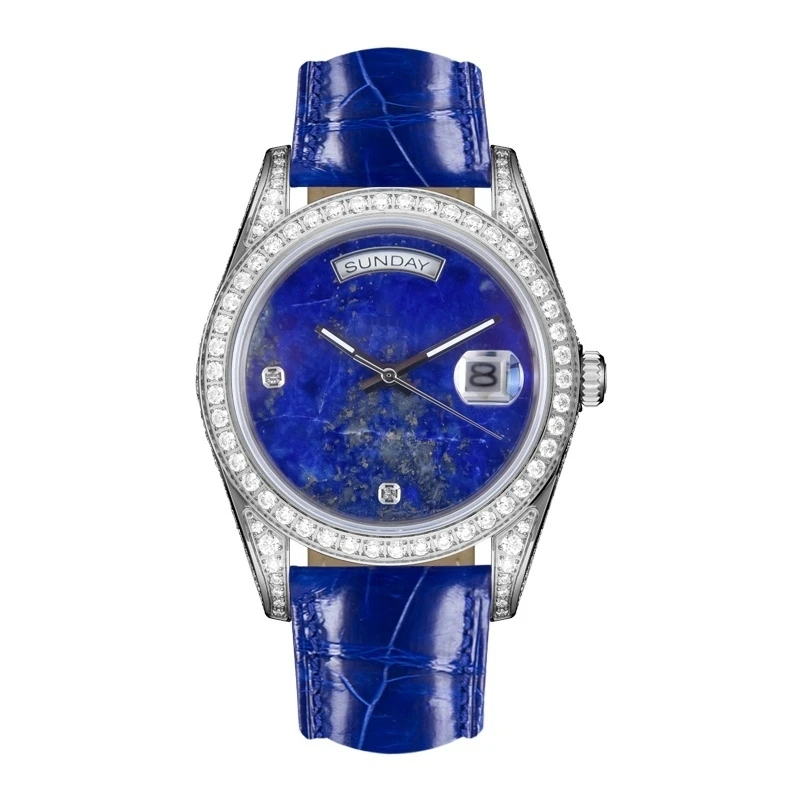 Customized LOGO Luxury Lapis Lazuli Dial Watch for Men Waterproof butterfly Buckle Genuine Leather Strap Quartz Watch