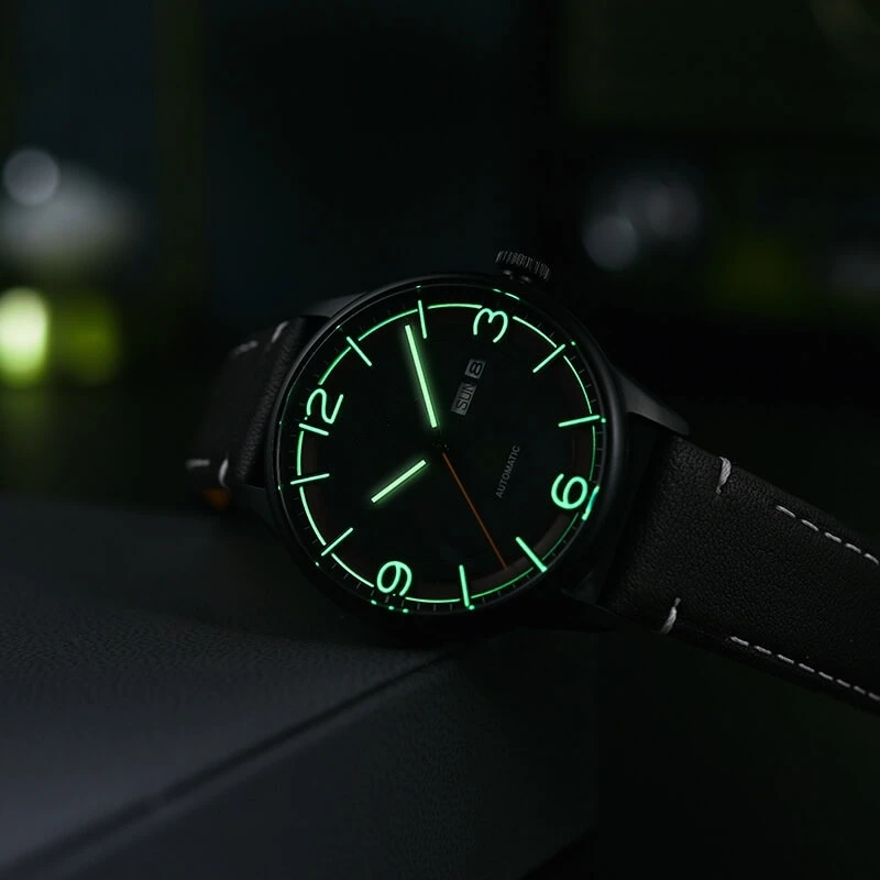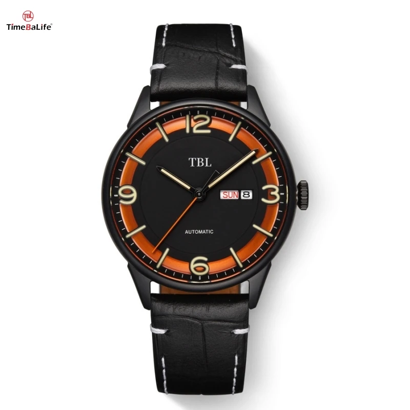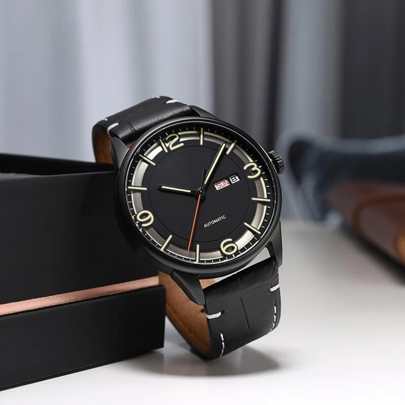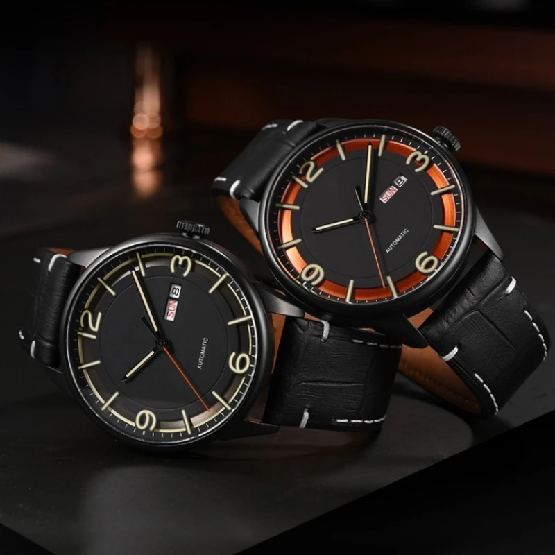 OEM Custom Round Case Genuine Leather Strap Dual Calendar Display Automatic Men's Watch Fashion Miyota Mechanical Watches