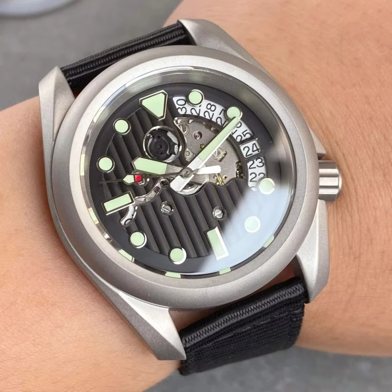 40MM NH35A Automatic Watch Skeleton Dial Sapphire 50M Water Resistant Date Display Mechanical Watches ODM