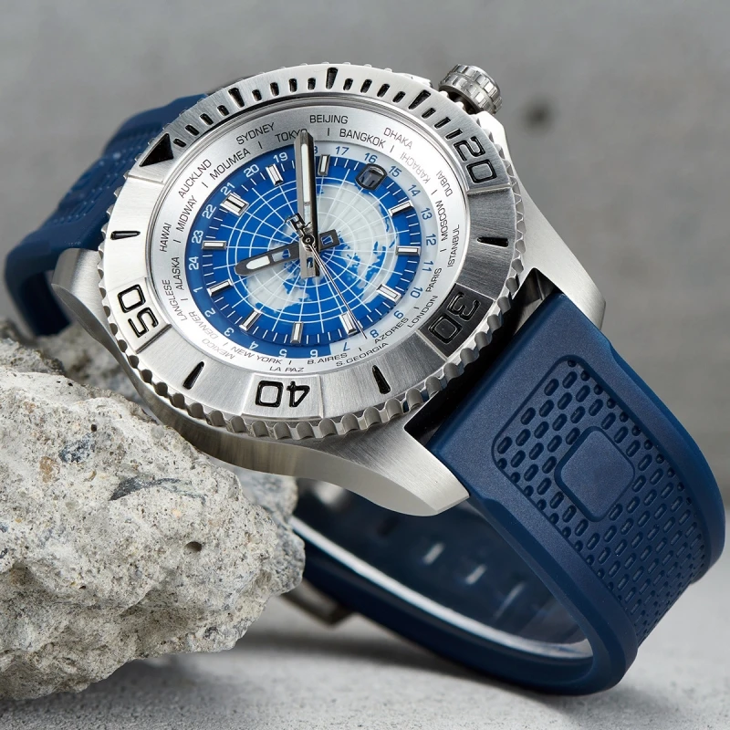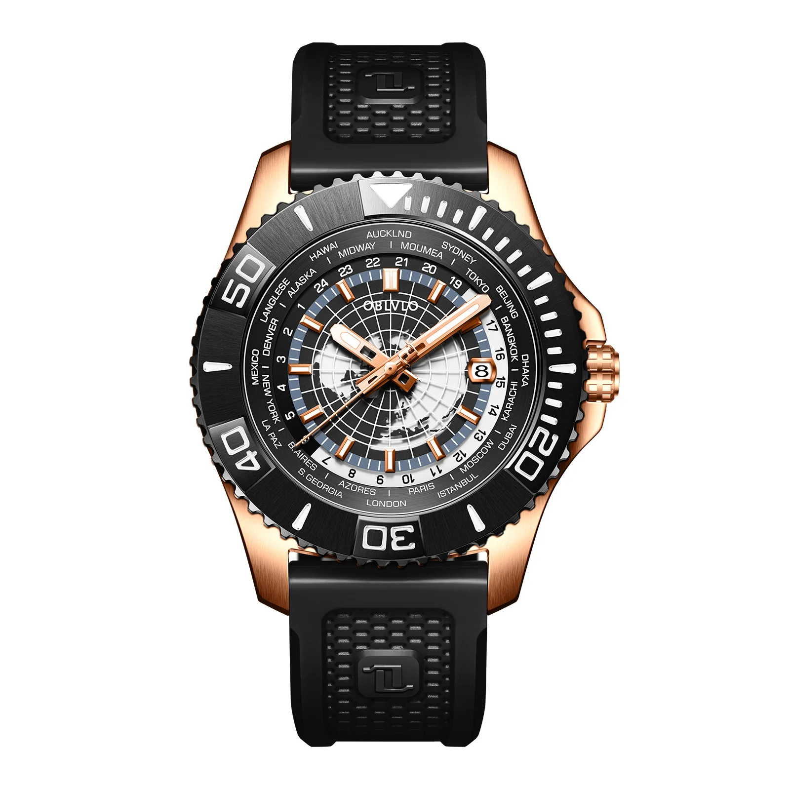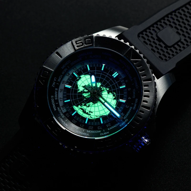 Factory Customized OEM World Map Dial Watch Luxury Fully Automatic Mechanical Diving Luminous Waterproof Navy Blue Watch Men