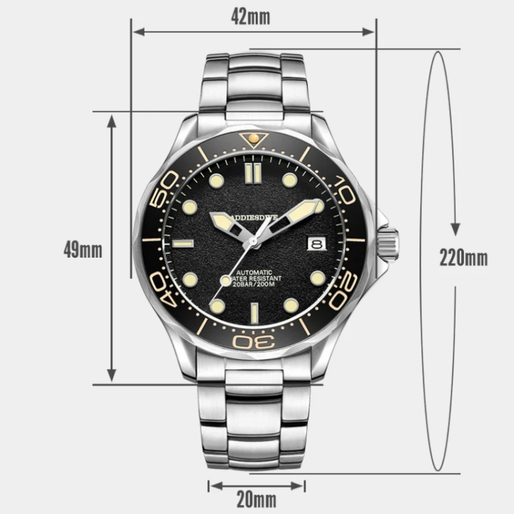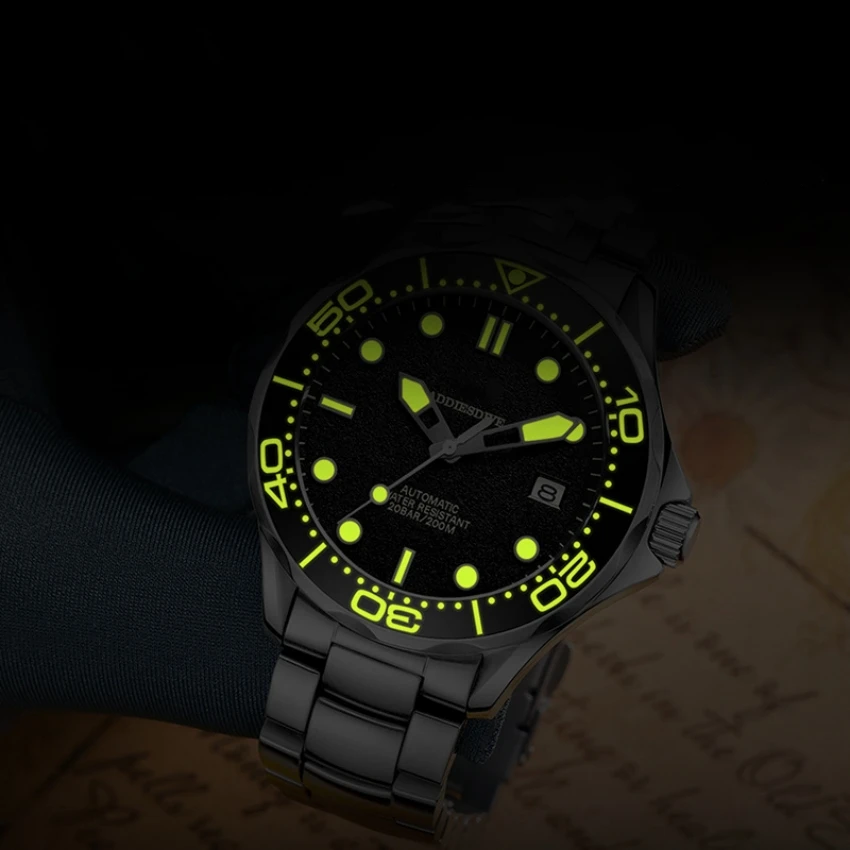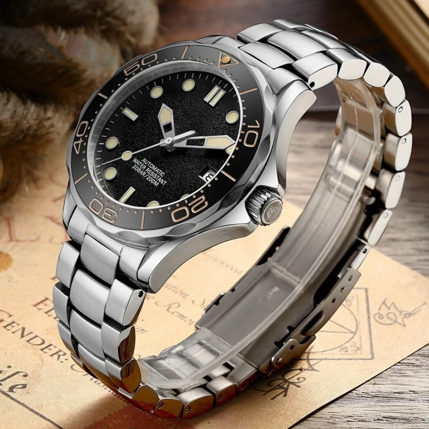 Customized NH35 Automatic Mechanical Movement 316L Solid Stainless Steel Vintage C3 Super Luminous 200m Diving Men's Watches