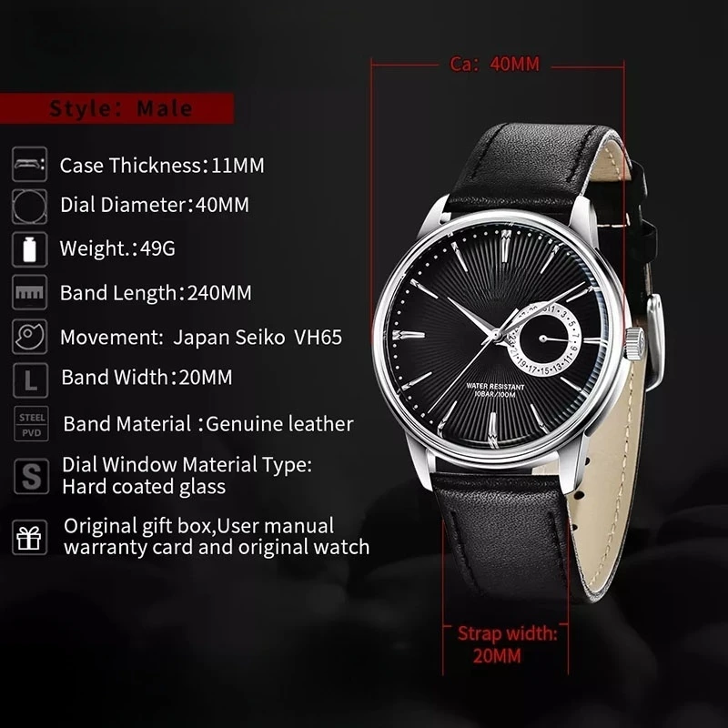 Factory OEM Custom Logo Luxury Waterproof Fashion Business Casual Watch Japanese VH65 Quartz Movement Men's Watch