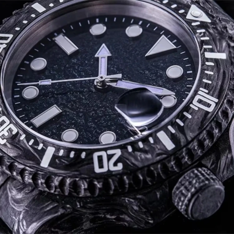 OEM ODM Custom Logo Luxury Super Luminous Nh35 Full Carbon Fiber Watches Case Waterproof Carbon Fiber White Watch