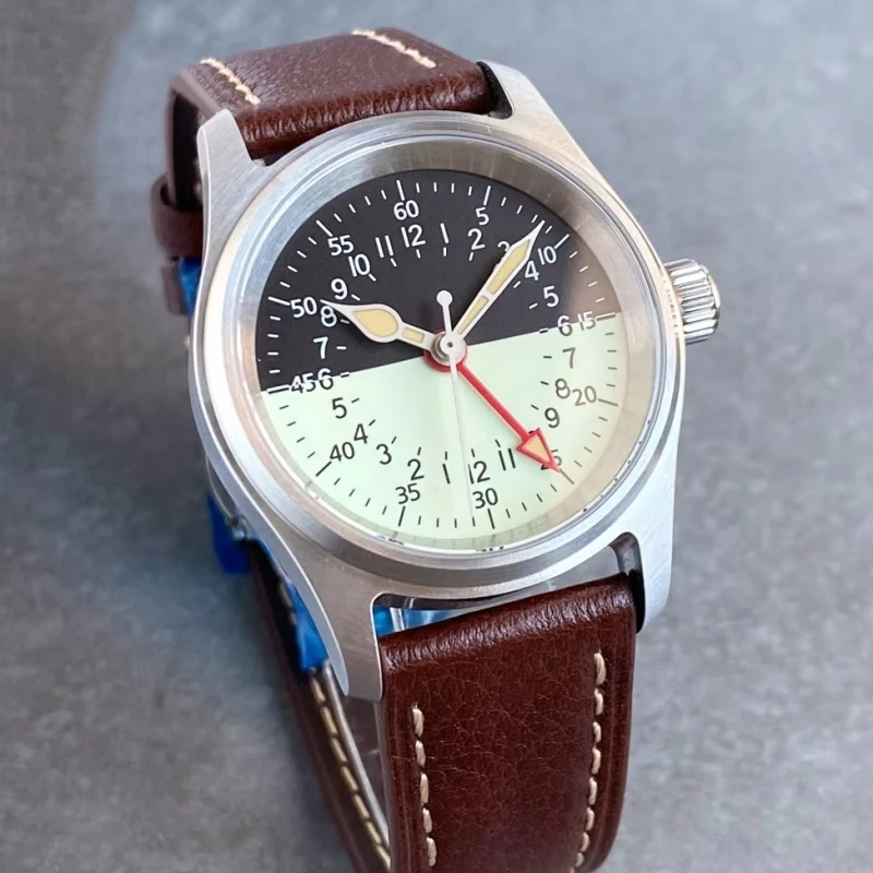 39mm Pilot 24 Hours Black and White Luminous Dial GMT Multiple Time Zone Watch NH34 Mechanical Vintage Men's Watch OEM