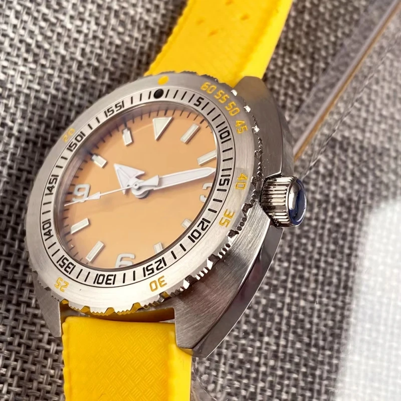 OEM ODM Luxury Custom NH35 Diver Watch Steel Men's Yellow Automatic Watch 42mm Waterproof Watch White Hands