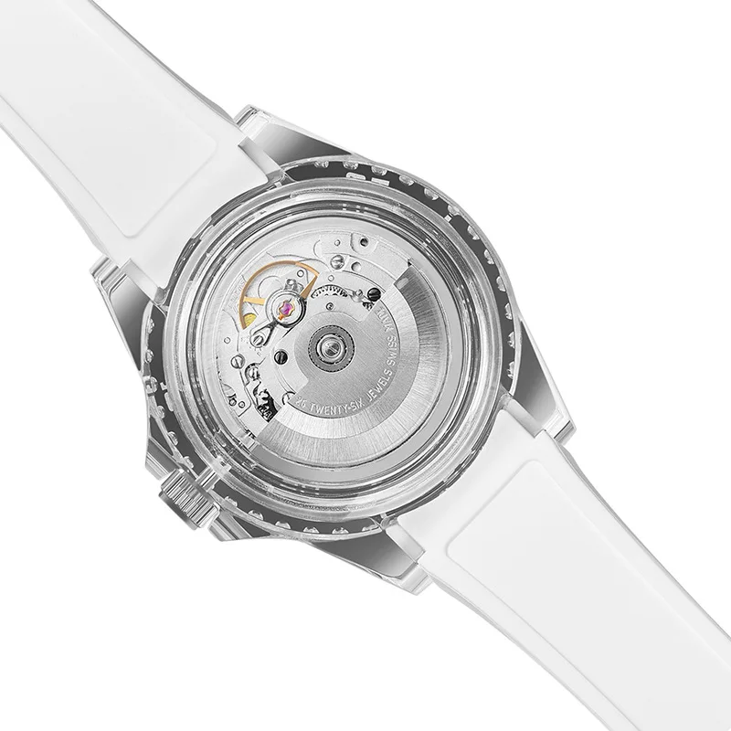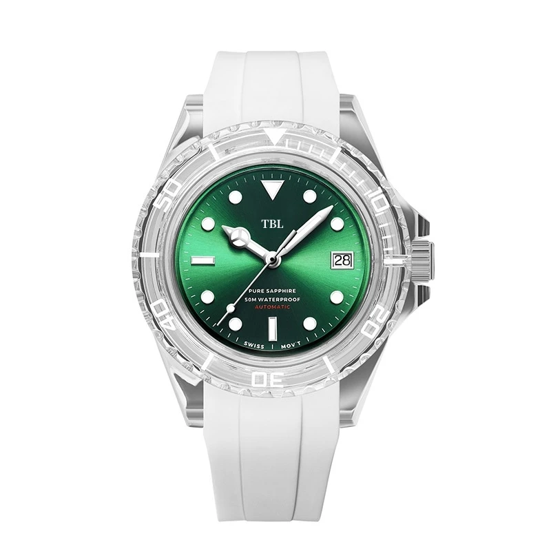 OEM Custom Transparent Sapphire Case Watch SW200-1 Fully Automatic Mechanical Watch BGW9 Luminous Calendar Watches