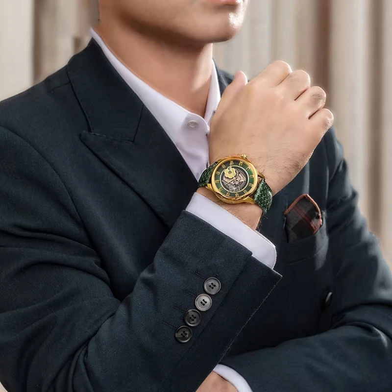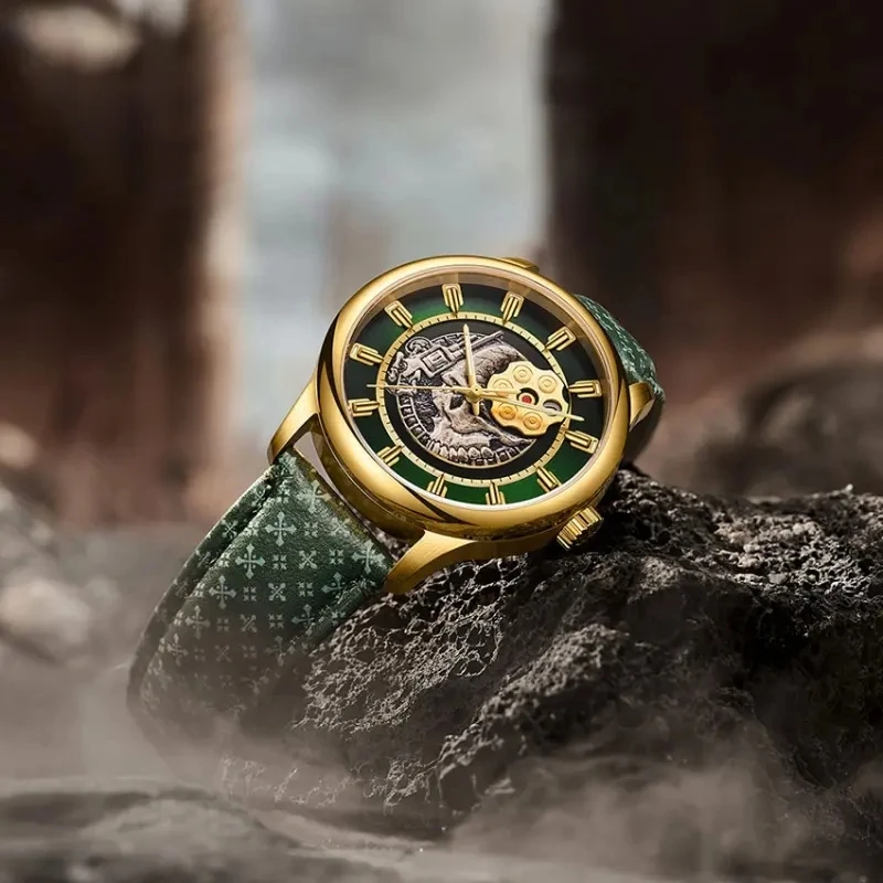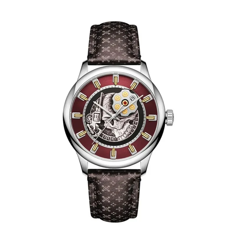 Factory Custom Luxury Fashion Men Watch Miyota Automatic Mechanical Casual Skeleton Watches for Leather Embossed Strap