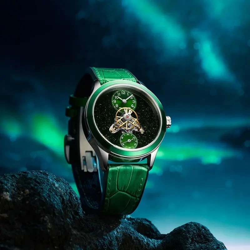 Factory Custom Brand Logo Business Luxury Skeleton Plate Men Watches with Rubber Strap Automatic Open-Heart Watch