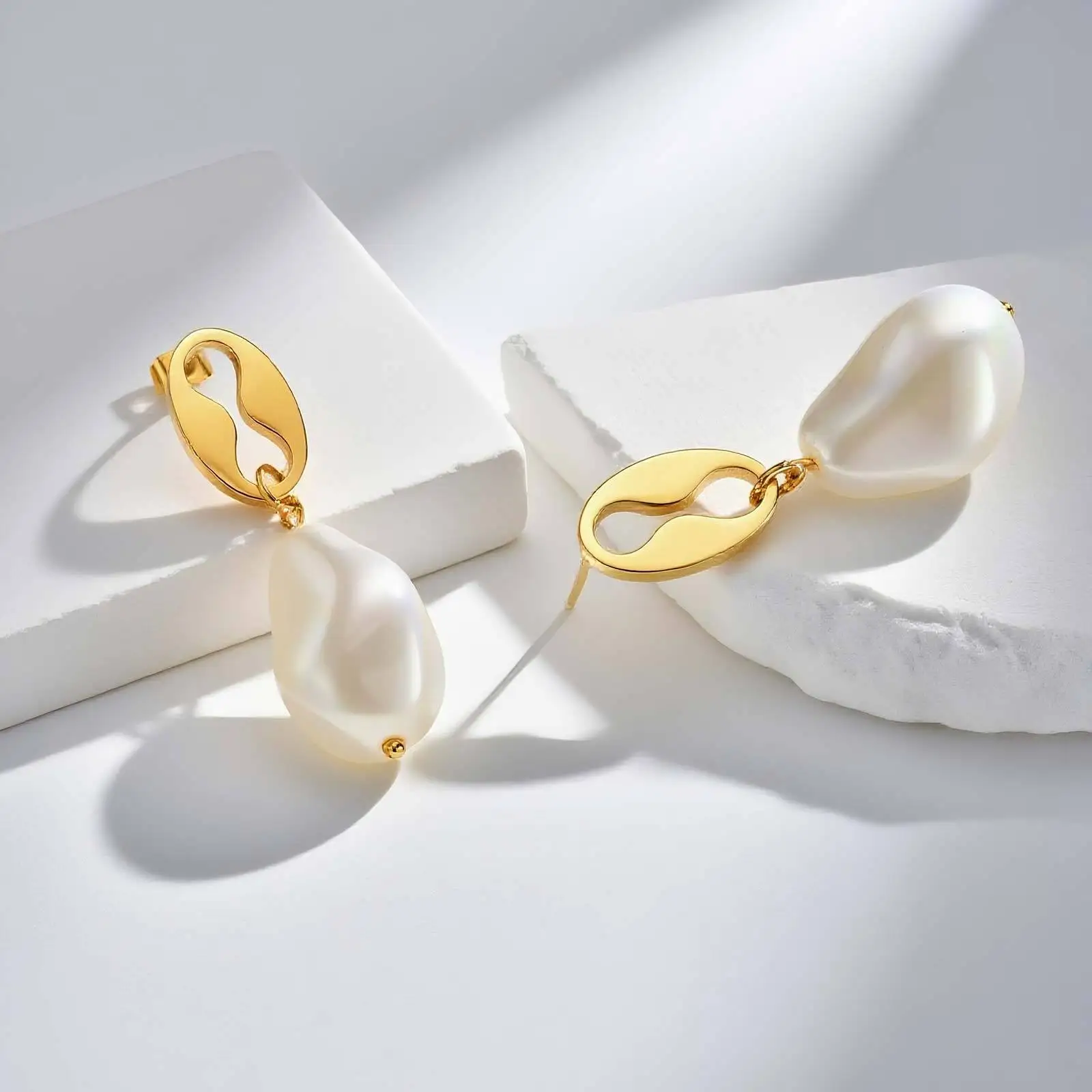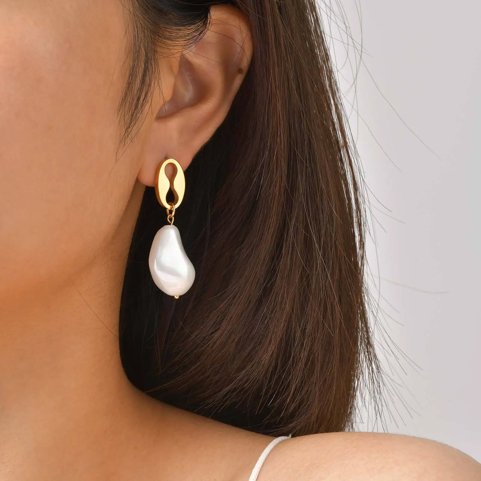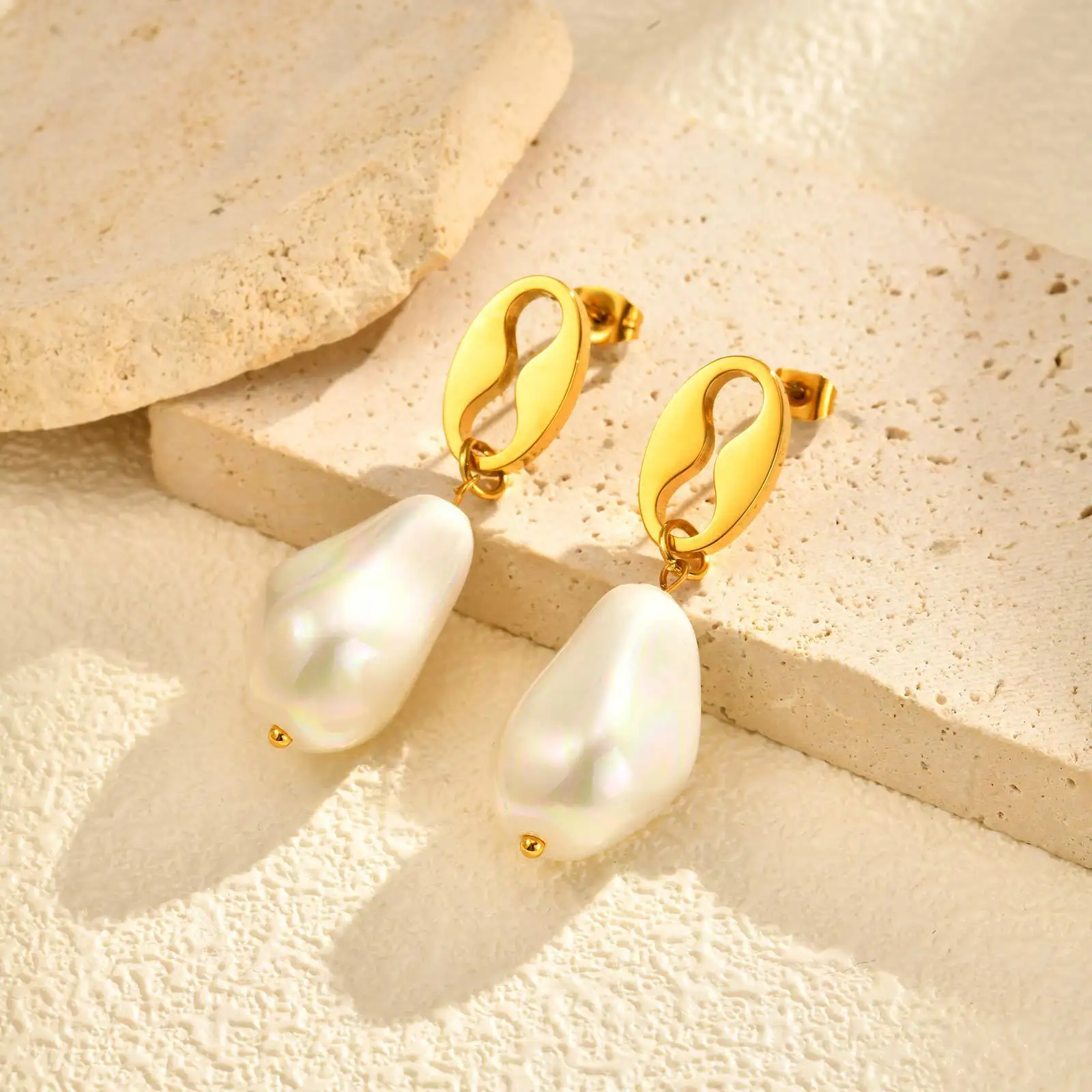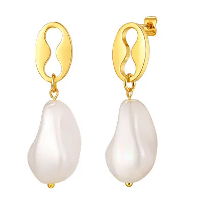 High Quality Stainless Steel Gold Plated Jewelry Drop Earrings Coffee Bean Irregular Pearl Pendant Earrings for Women