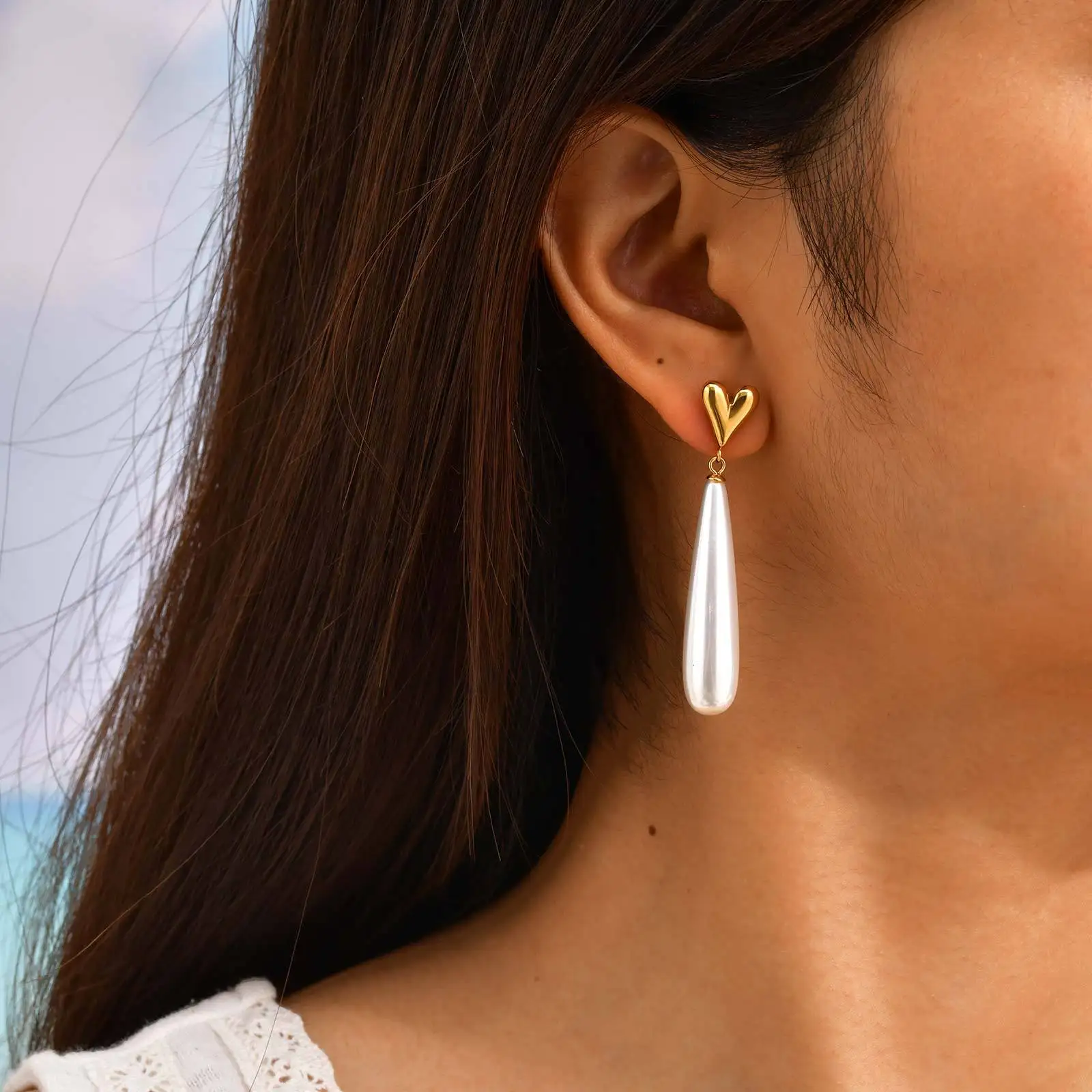 Minimalist Niche Design Jewelry Imitation Pearl Drop Earrings Women Stainless Steel Long Water Drop Earrings