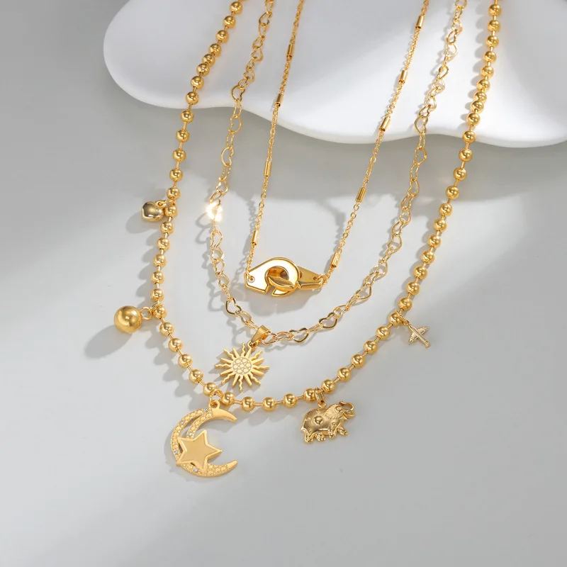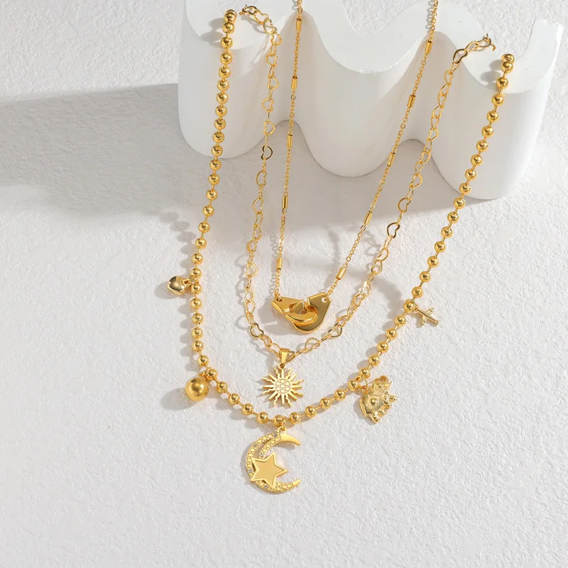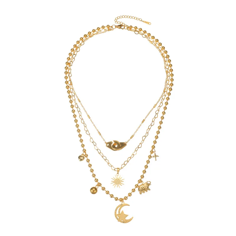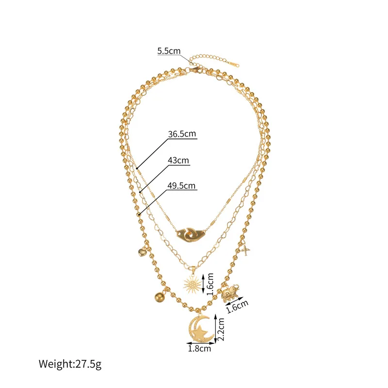 Double Layer Moon Necklace Titanium Steel 18K Gold Plated Everyday Dainty Pendant Choker for Women Fashion Jewelry Gift