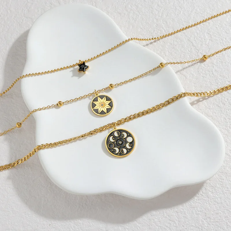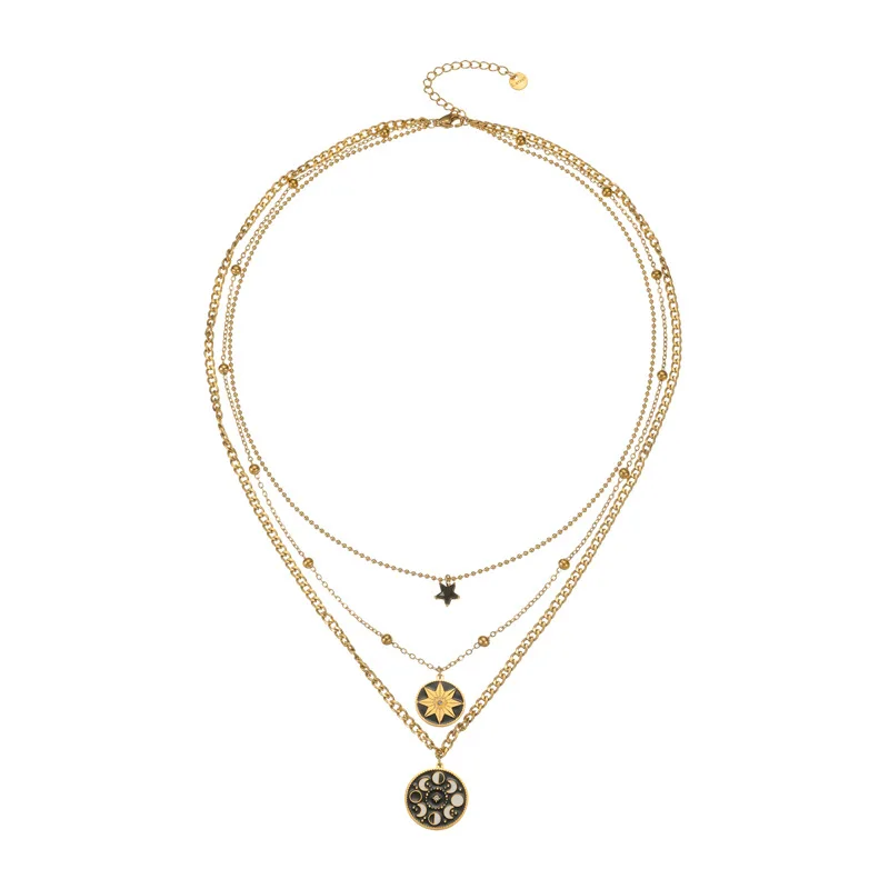 Stainless Steel Octagram Star Necklace 18K Gold Plated Double Layer Ins Fashion Long Pendant Chain Office OL Jewelry for Women