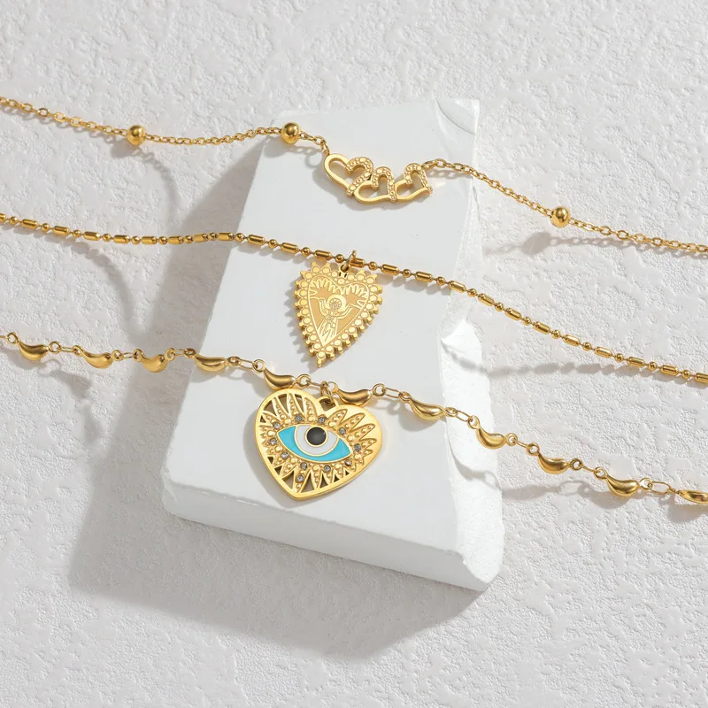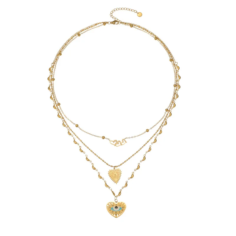 Necklace Nazar Amulet Pendant 18K Gold Plated Stainless Steel Layering Chain Jewelry Gift for Women