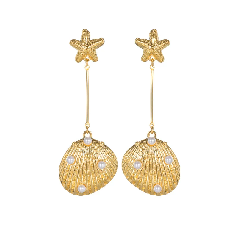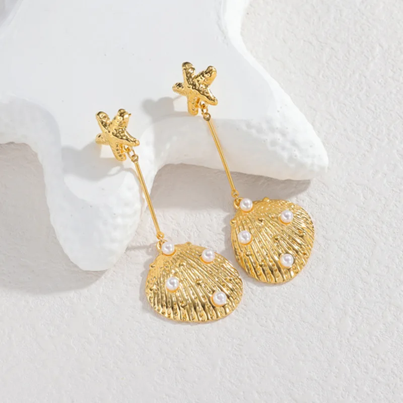 Starfish Earrings for Women 18K Gold Plated Stainless Steel Ins Fashion Light Luxury Tarnish Proof Statement Earrings