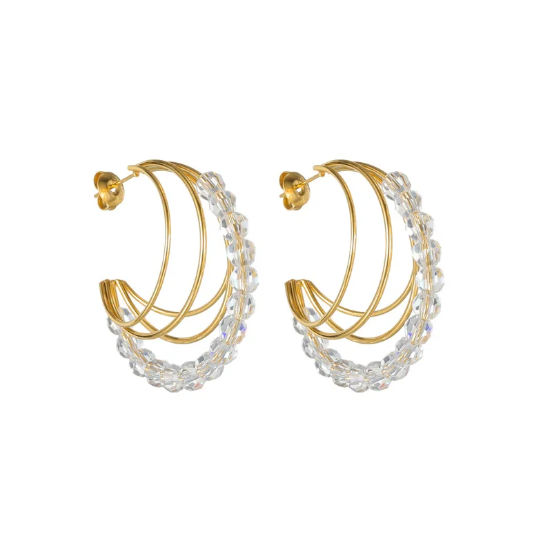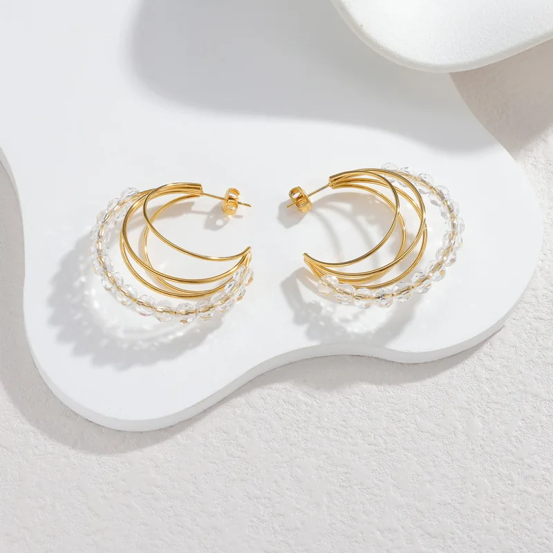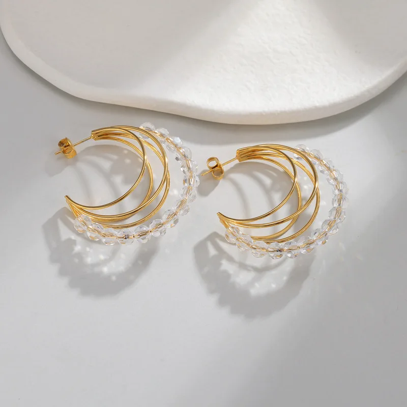 C Shape Hoop Earrings Stainless Steel 18K Gold Plated Vacation Style Minimalist Geometric Earrings for Women Light Luxury