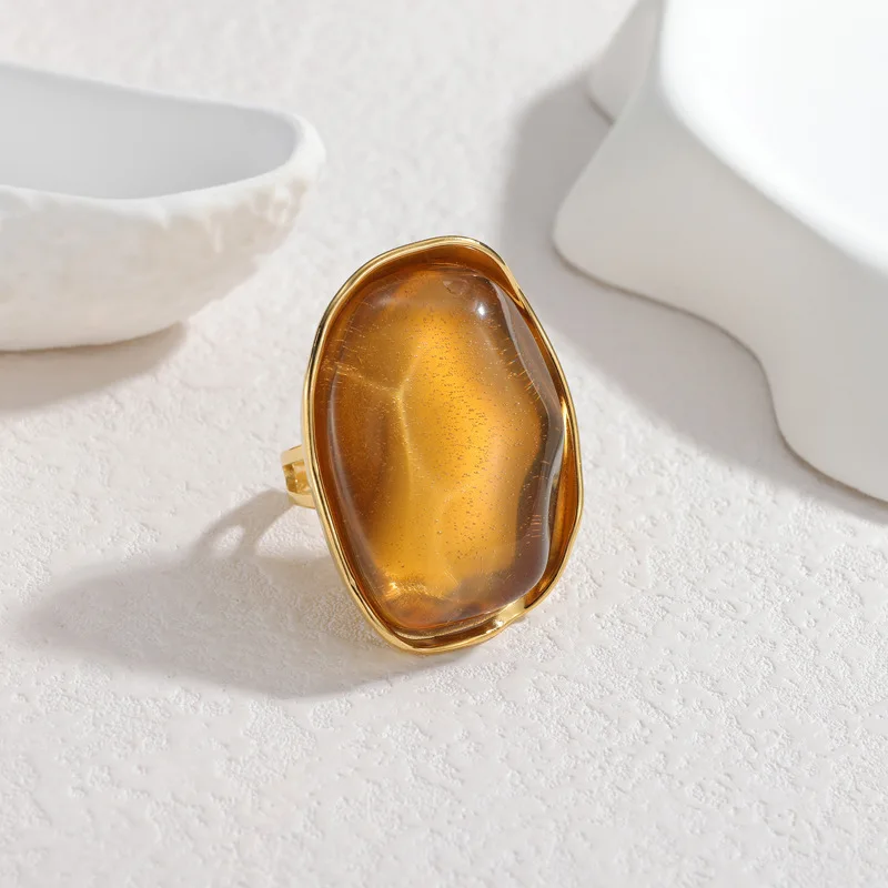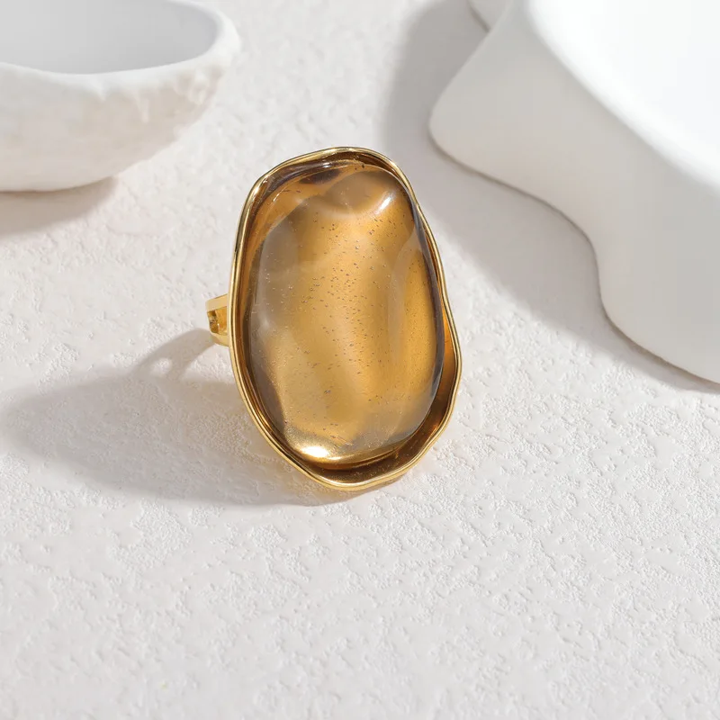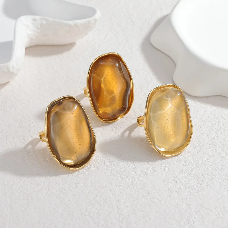 Light Luxury Geometric Ring Oval Irregular Shape 18K Gold Plated Stainless Steel Women Minimalist Jewelry Wholesale