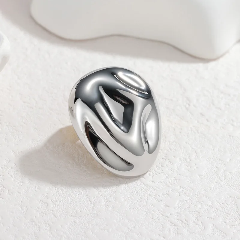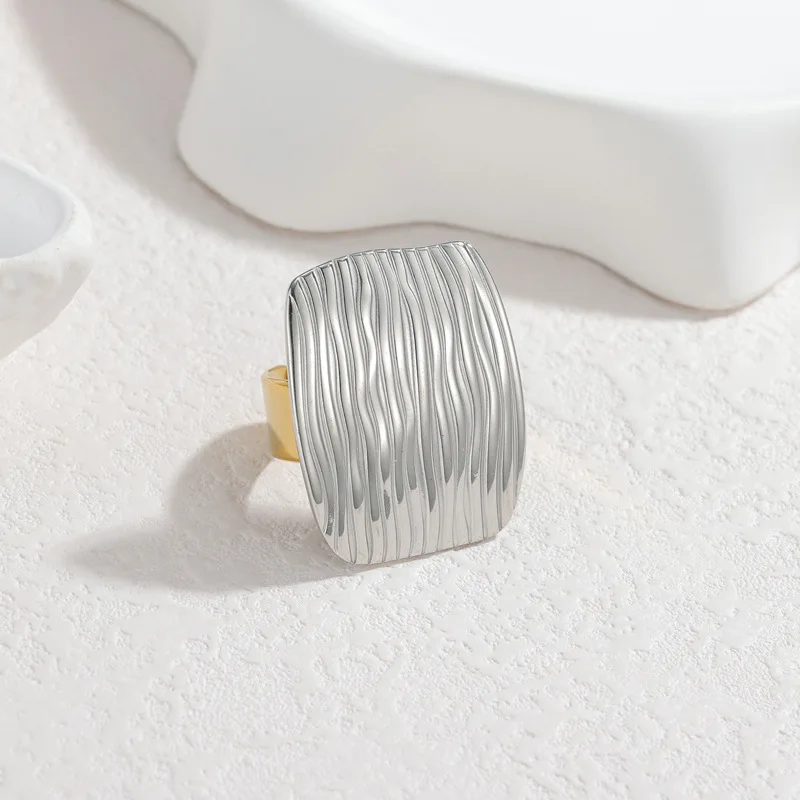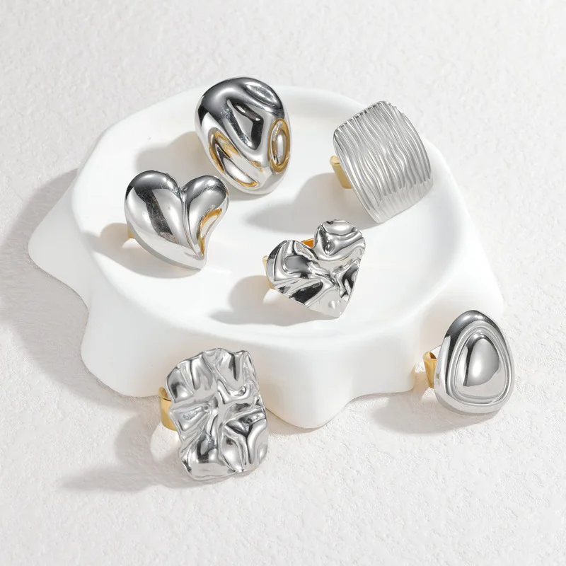 Hot Sale Geometric Heart Ring Wrinkled Design 18K Gold Plated Stainless Steel Light Luxury Minimalist Ring for Women